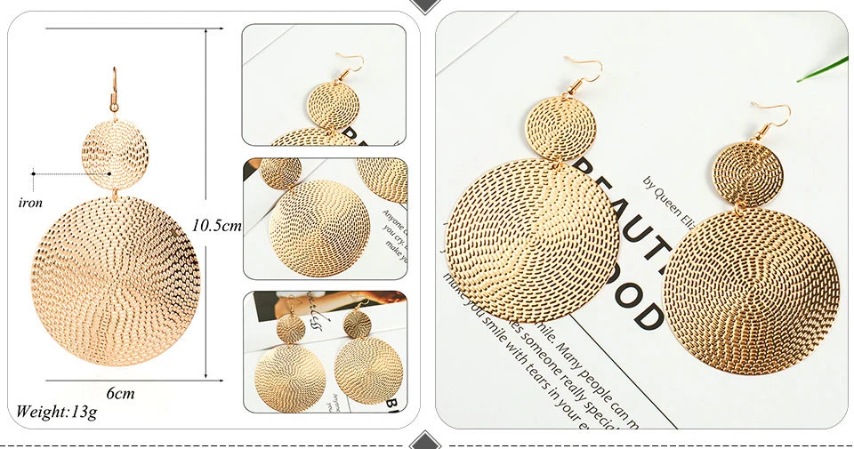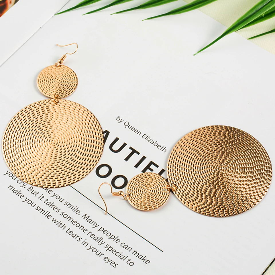 Женские серьги-подвески из сплава 2020, большие круглая серьга круга, золотая бижутерия