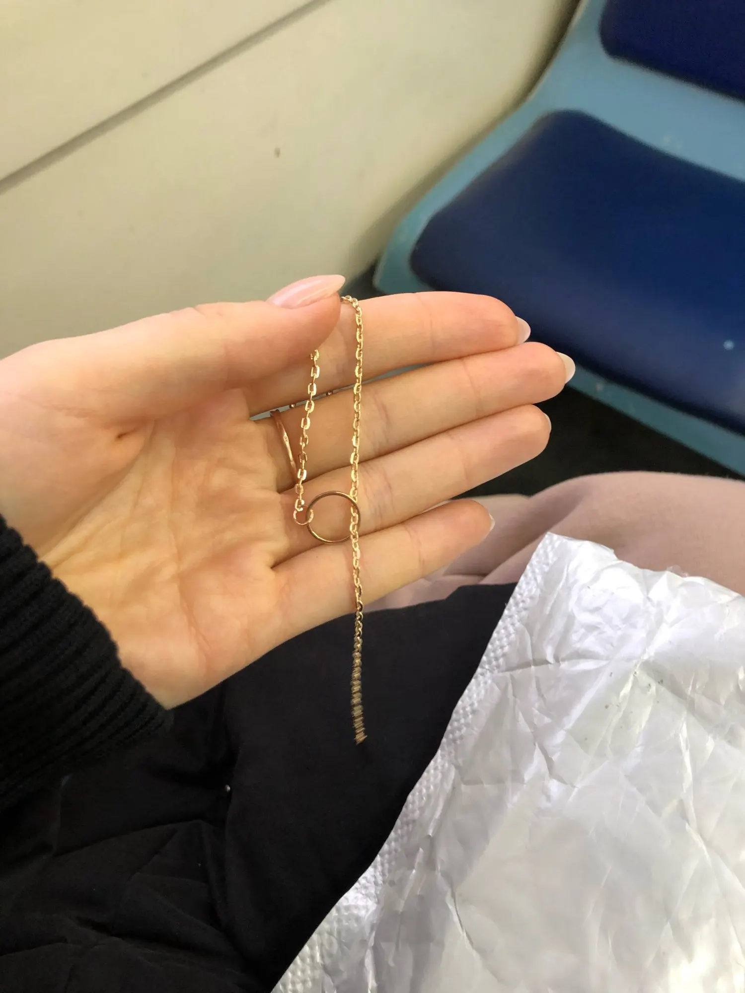 Цепочка длинновата, пришлось укорачивать. Вообще выглядит красиво, но из колечка вторая половина вылетает ☹️ продавец хороший за 11 дней до Кемерово