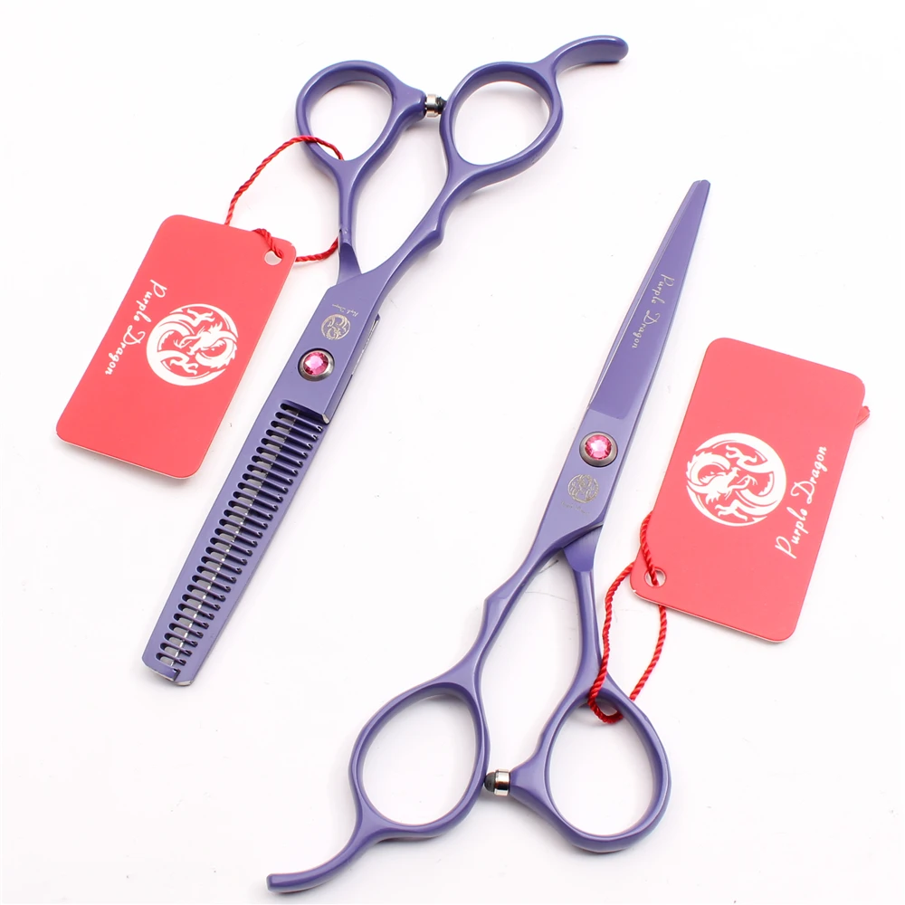 Левая рука 5,5 дюйма 16 см фиолетовый дракон розовый ножницы для стрижки филировочные ножницы Профессиональные Парикмахерские ножницы для волос Z8001