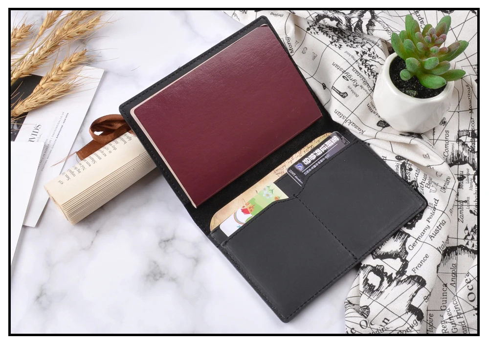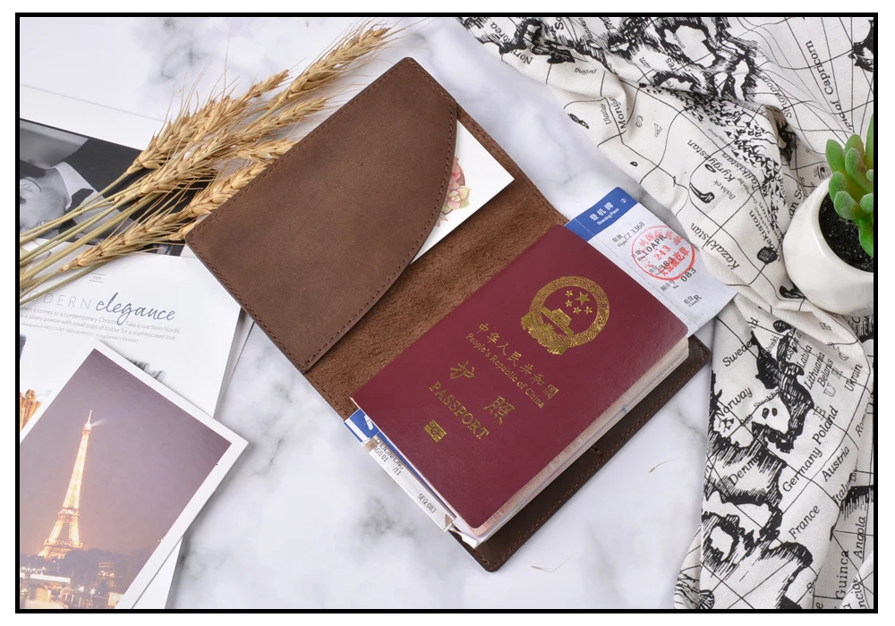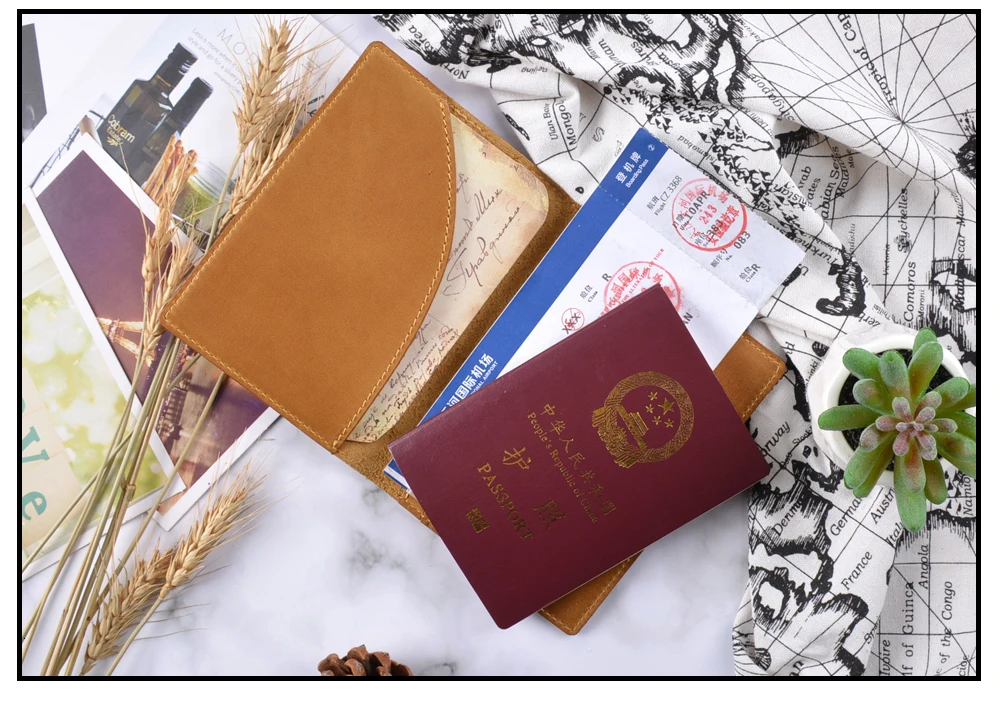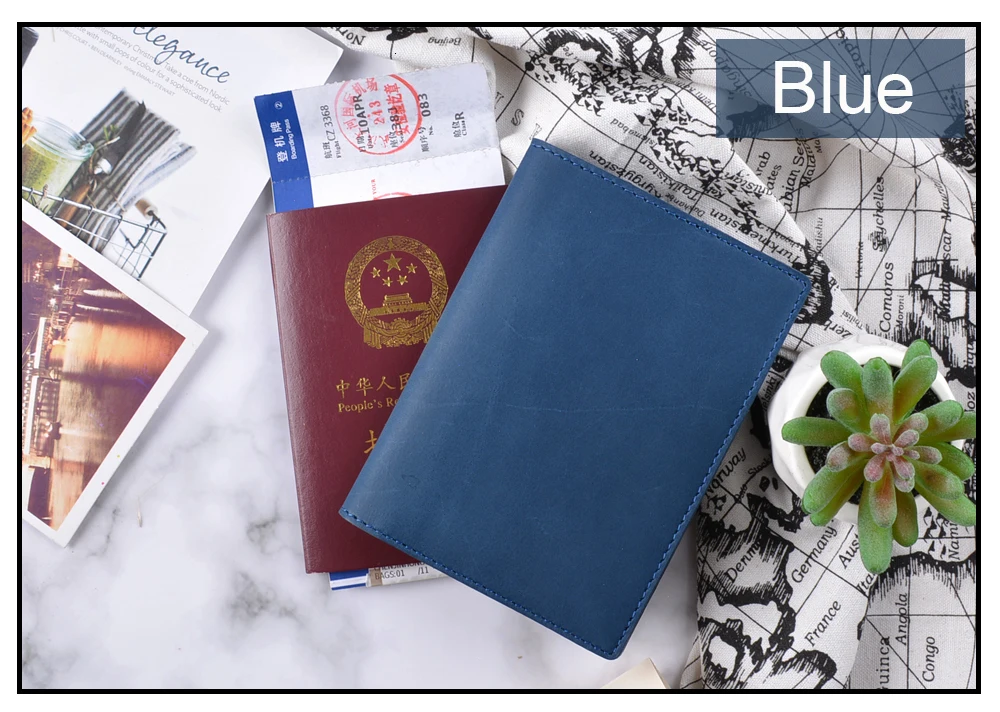 Обложка унисекс из натуральной вощеной кожи, однотонный чехол для паспорта, удостоверения личности, визиток, деловой дорожный кошелек