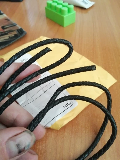 Шнурок не ручной работы и не из натуральной кожи, а из клеёнки. Очень жёсткий, как проволока. Разочарован! Но доставка очень быстрая! 12 дней.