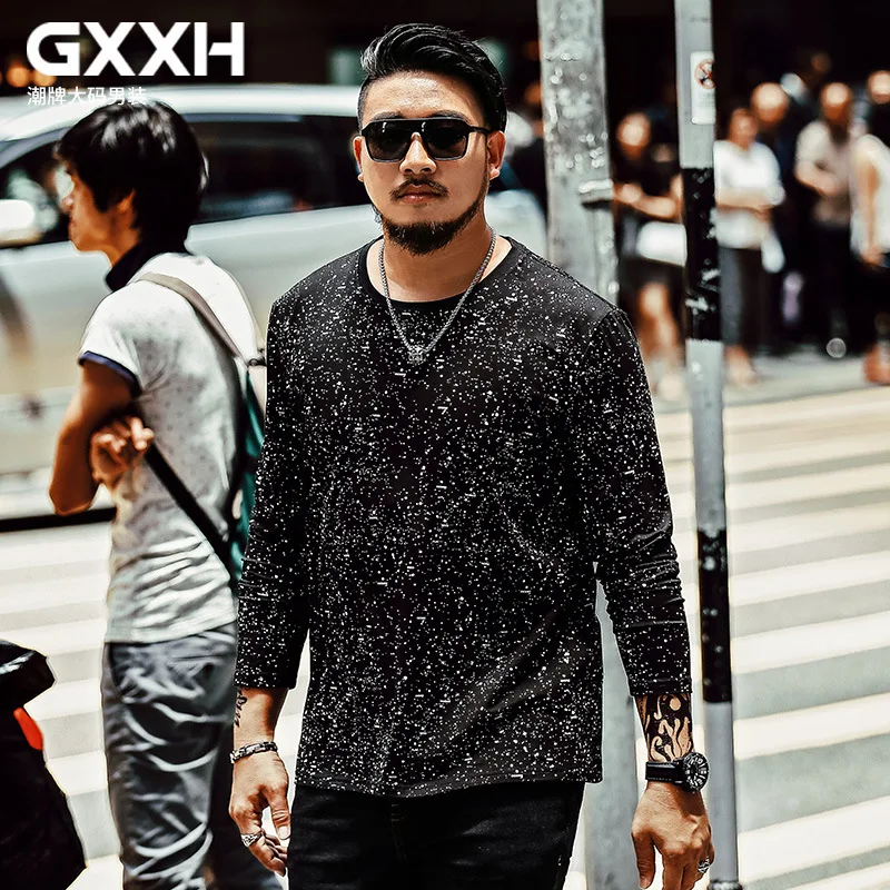 GXXH 2020 Осенняя хлопковая Футболка большого размера XXL-7XL 140 кг, Мужская модная свободная футболка с длинным рукавом размера плюс