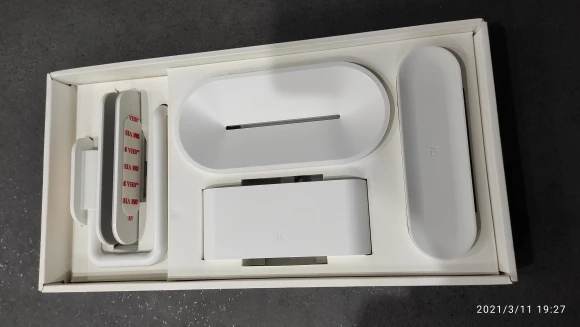 коробка пришла мятая, но внутри все целое. Держатель для щеток подходит не для всех щеток (придется подбирать по размеру).