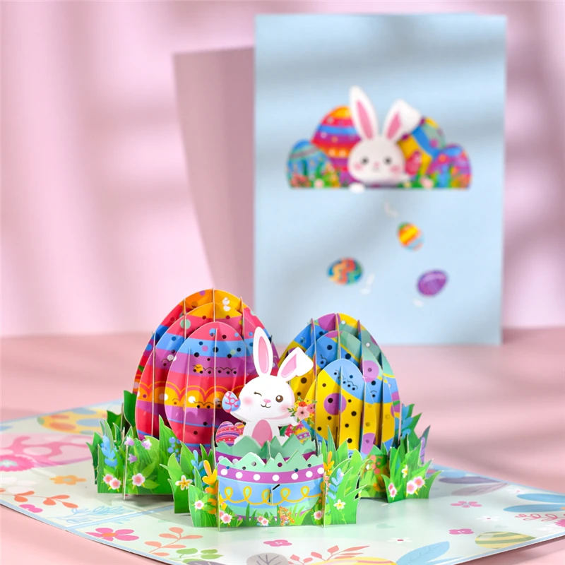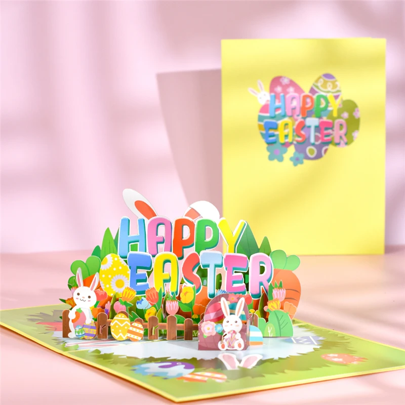 Поздравительная открытка с пасхальным 3d-рисунком зайчика, фотокорзина, открытки с пасхальными рисунками для детей на день рождения