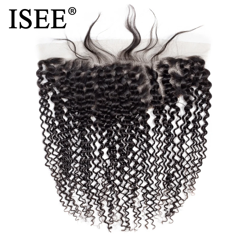 ISEE волосы перуанские кудрявые фронтальные кружева Закрытие 13*4 швейцарские кружевные волосы для наращивания Remy человеческие волосы натуральный цвет бесплатная доставка