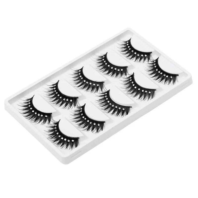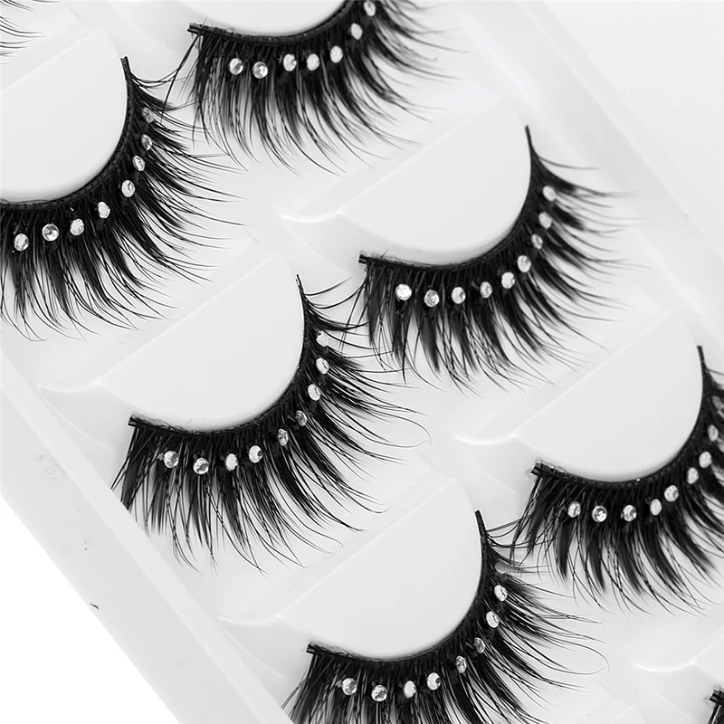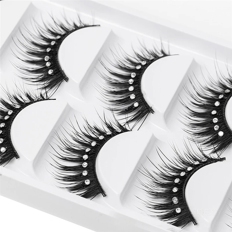 5 пар сценический макияж удлиняющие ресницы черные длинные с 9 бриллиантами украшения роскошные натуральные пушистые объемные ресницы много
