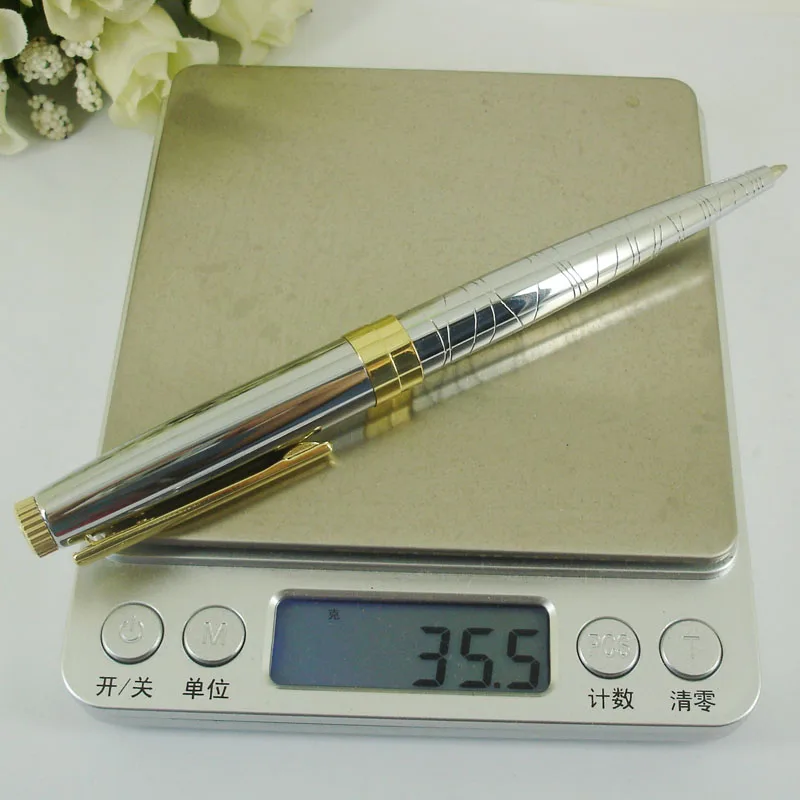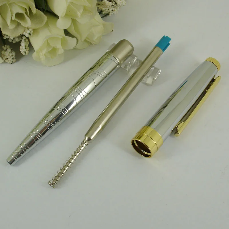 ACMECN Mnt пустая Серебряная шариковая ручка 1,0 мм , ручка для письма с серебряным покрытием и золотым акцентом, механические металлические латунные шариковые ручки