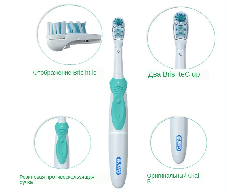 Электрическая зубная щетка Oral-B Cross Action, отбеливание зубов, ультразвуковая зубная щетка, не перезаряжаемая, двойная очистка, 4 сменные насадки, подарок
