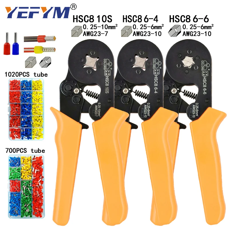 HSC8 10S обжимные клещи 0,25-10mm2 23-7AWG HSC8 6-46-6 с 1020 шт.кор. трубы типа Тип иглы Терминала Мини Давление провода инструмент