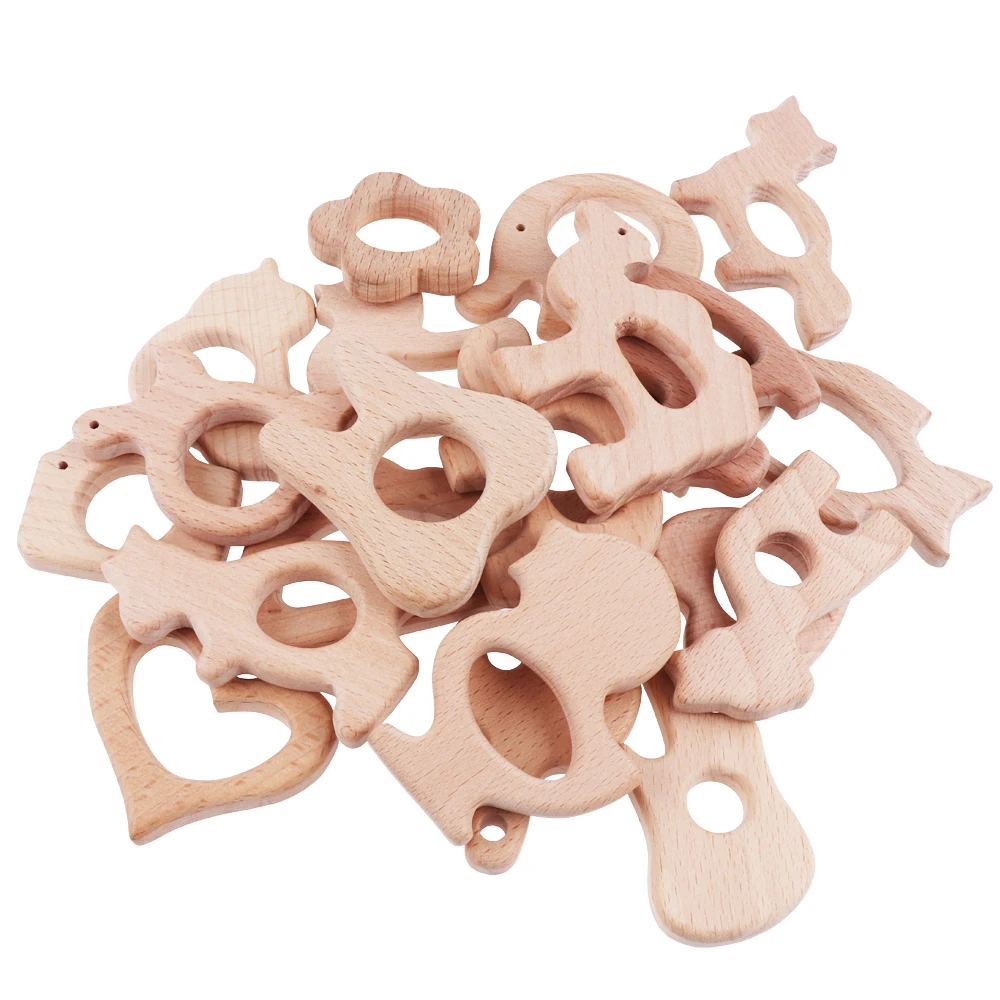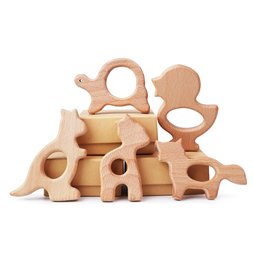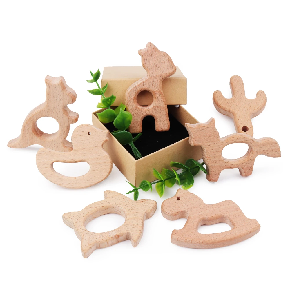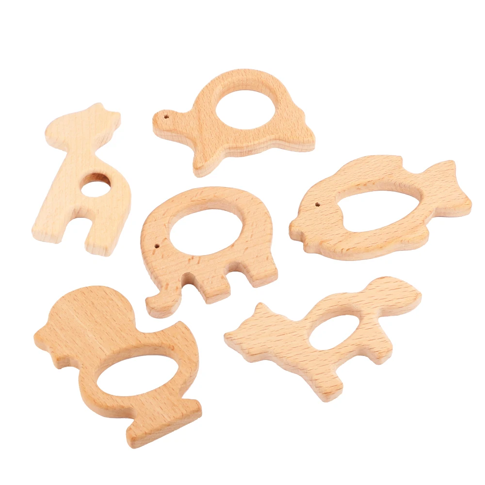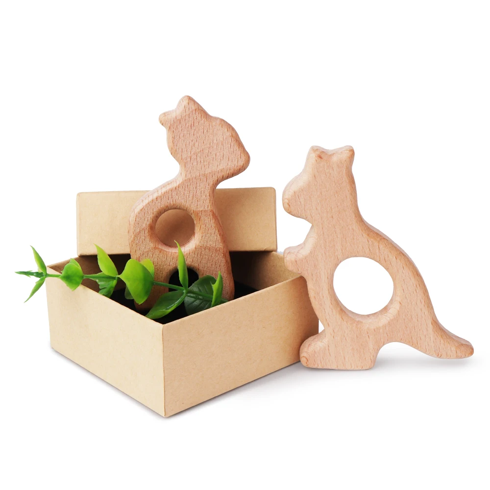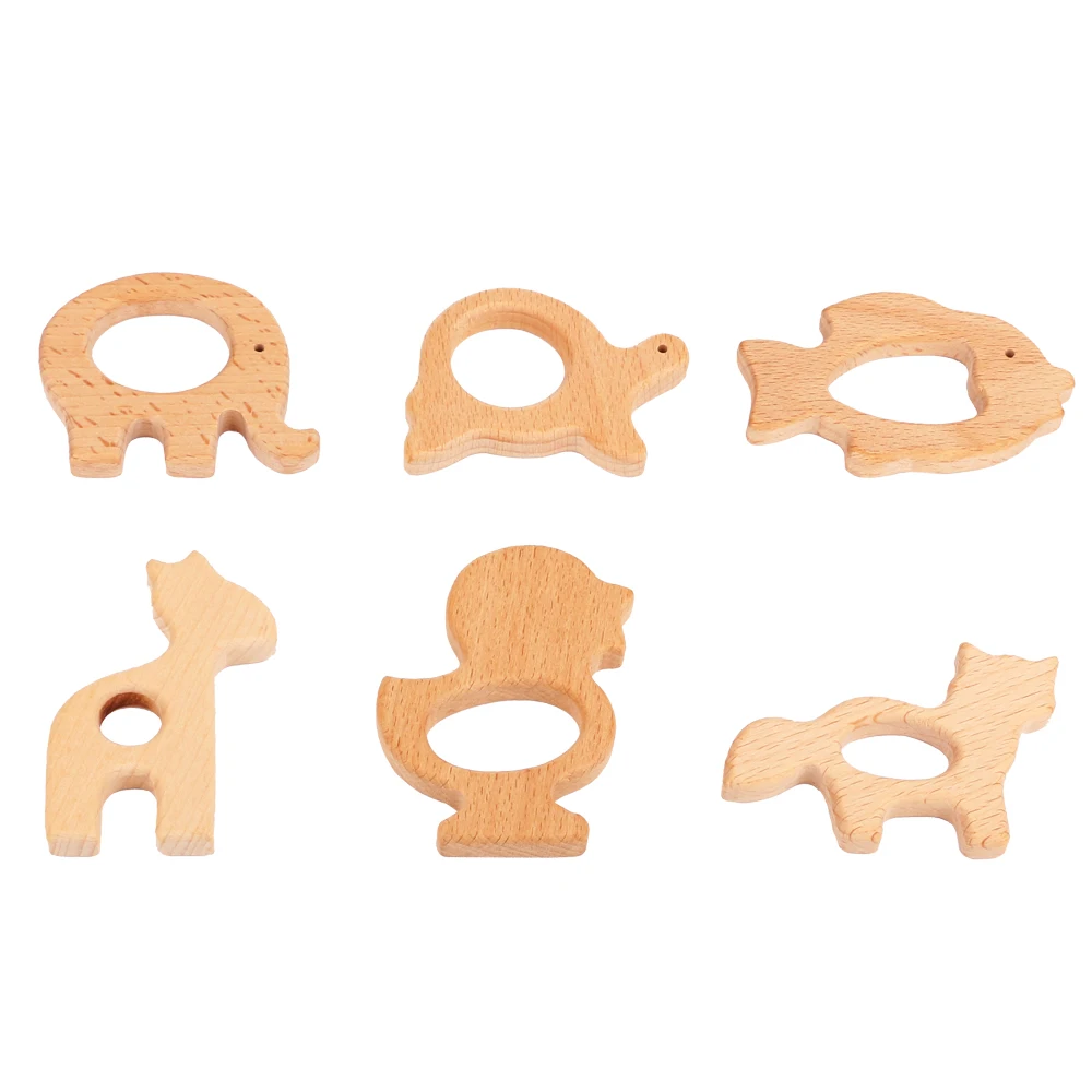 Грызунок для прорезывания зубов Прорезыватель из буковой древесины в форме животных, 50 шт., аксессуары для прорезывания зубов игрушки, погремушки для младенцев, подарки для душа
