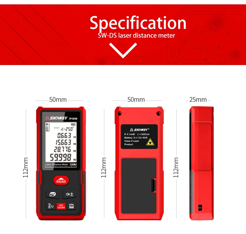 Лазерный дальномер лазер SNDWAY, дальность измерения 120 м, 100 м, 80 м, 70 м, 60 м, 50 м, 40 м, лазерная рулетка, дальномер, линейка для охоты