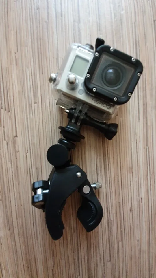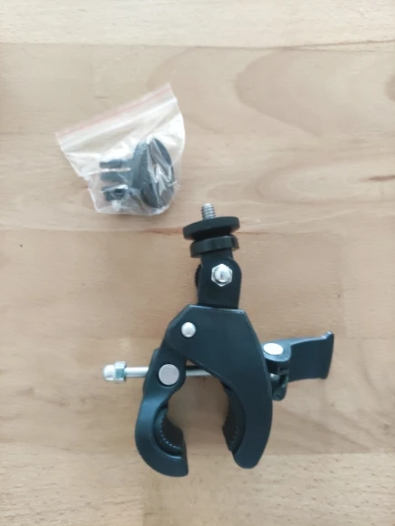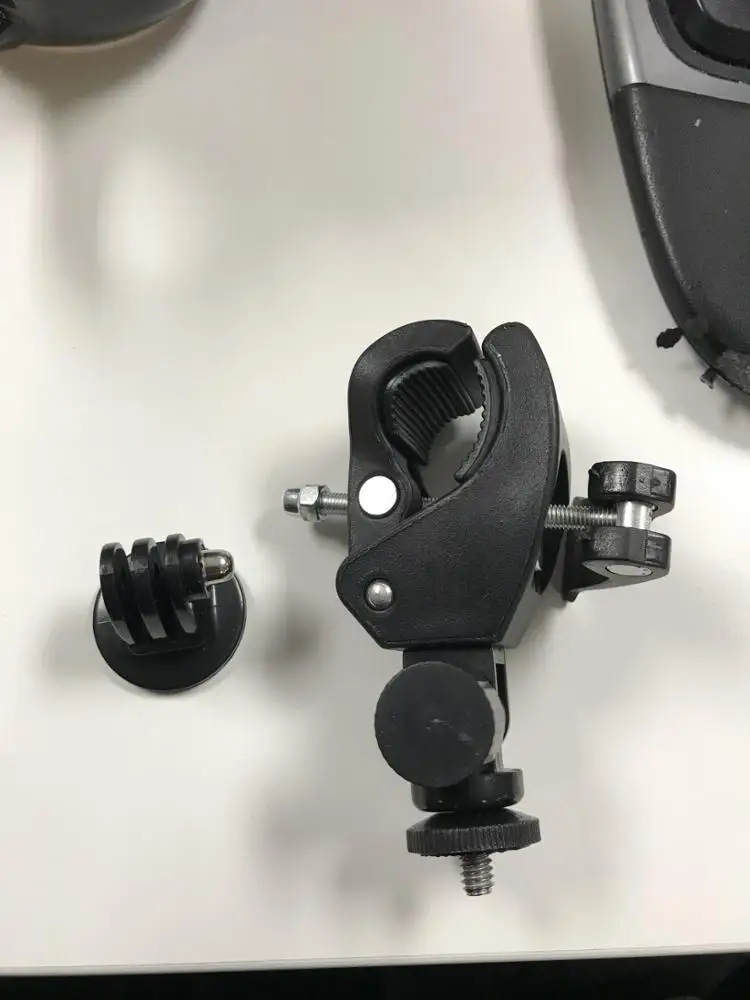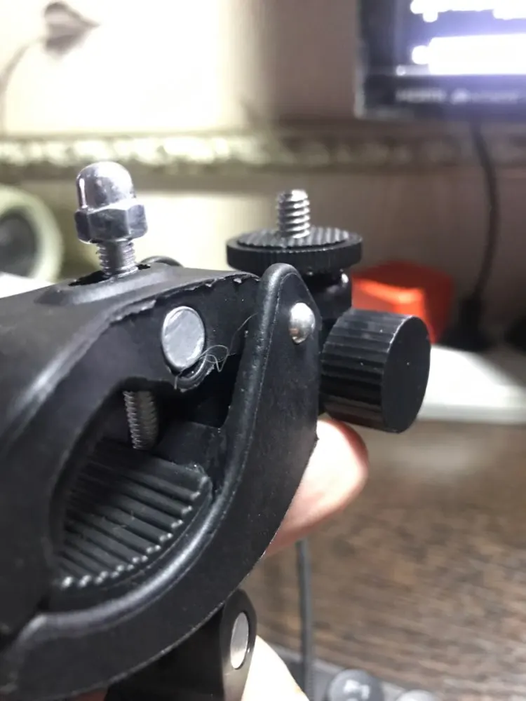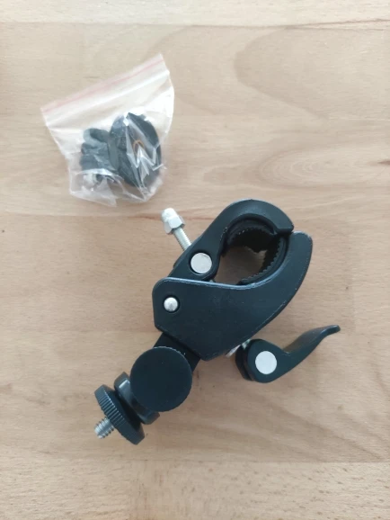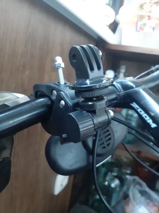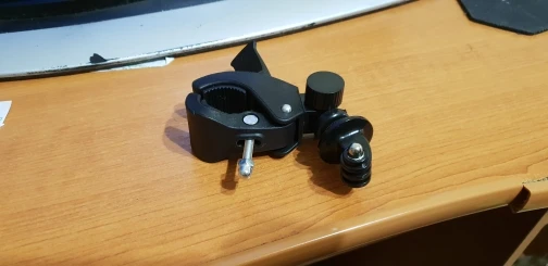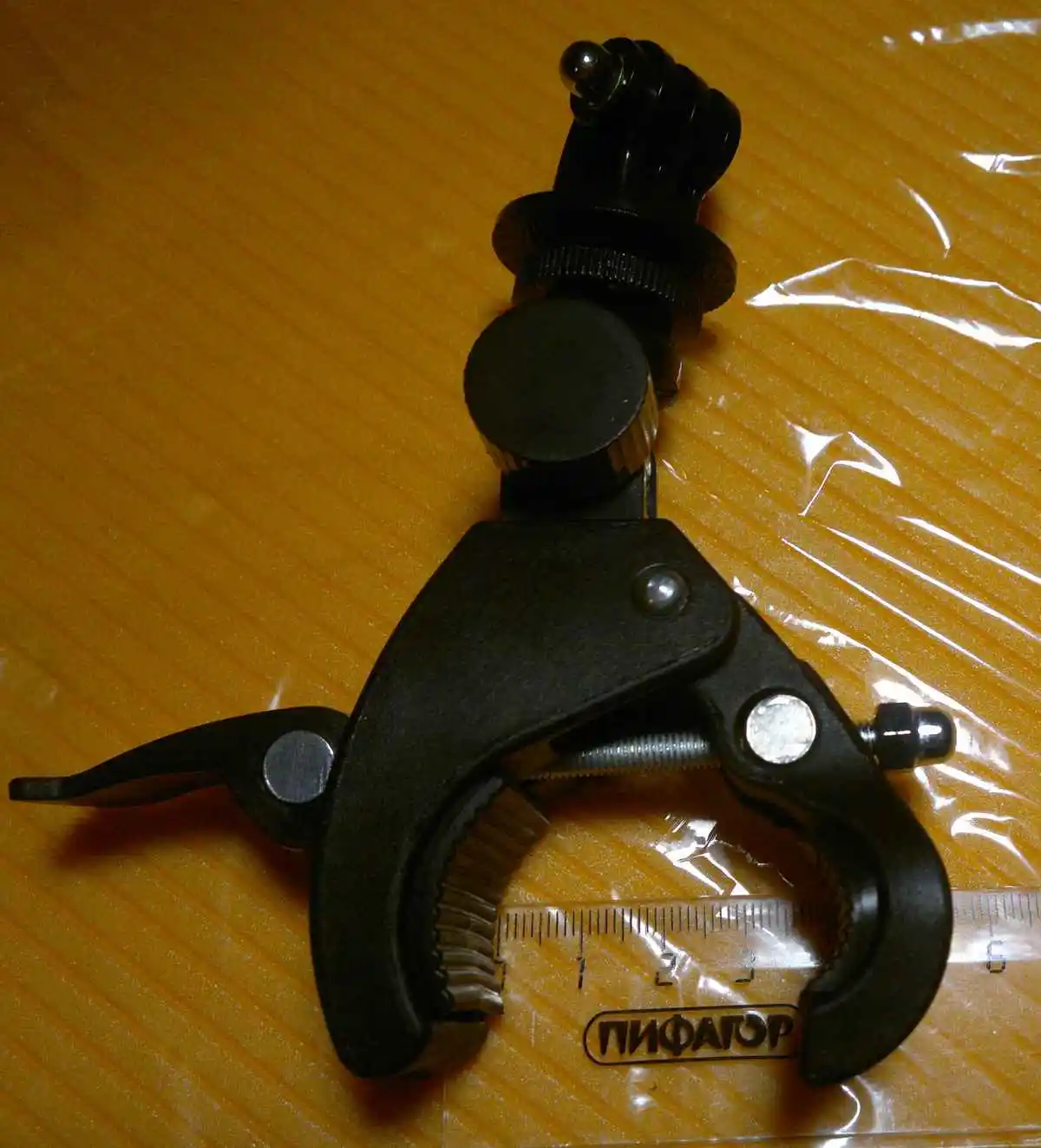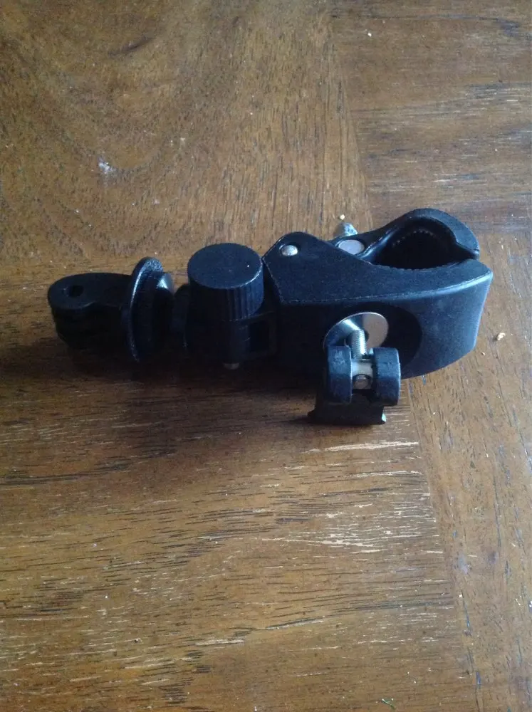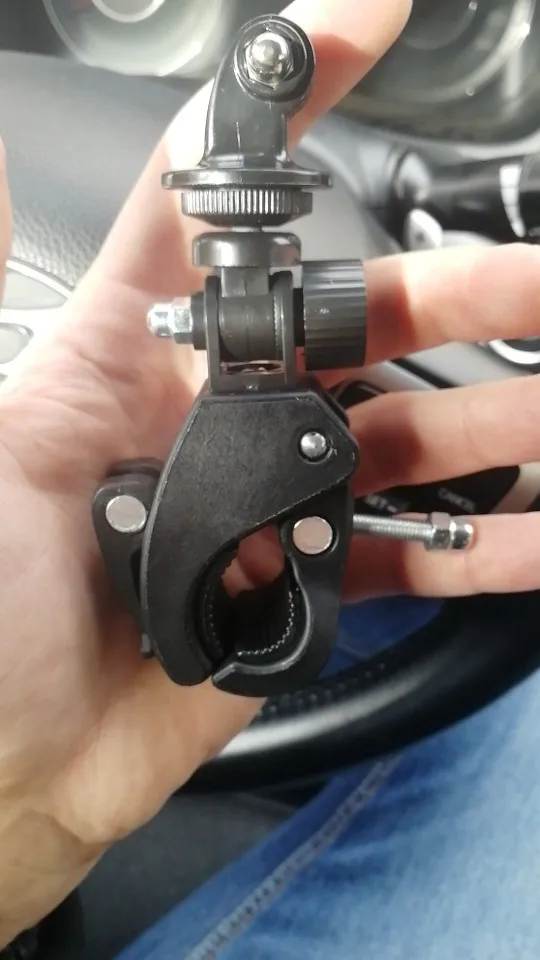 Кронштейн брал вместо крепления на ствол ружья, специальные стоят дороже. Эксперимент не удался. Для ружья не подойдёт, слишком хлипковат, при отдаче 12го калибра будет болтаться в месте крепления камеры. На лисопед или самокат может и пойдёт.