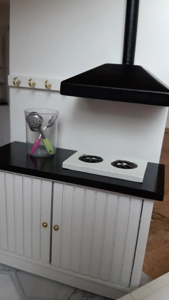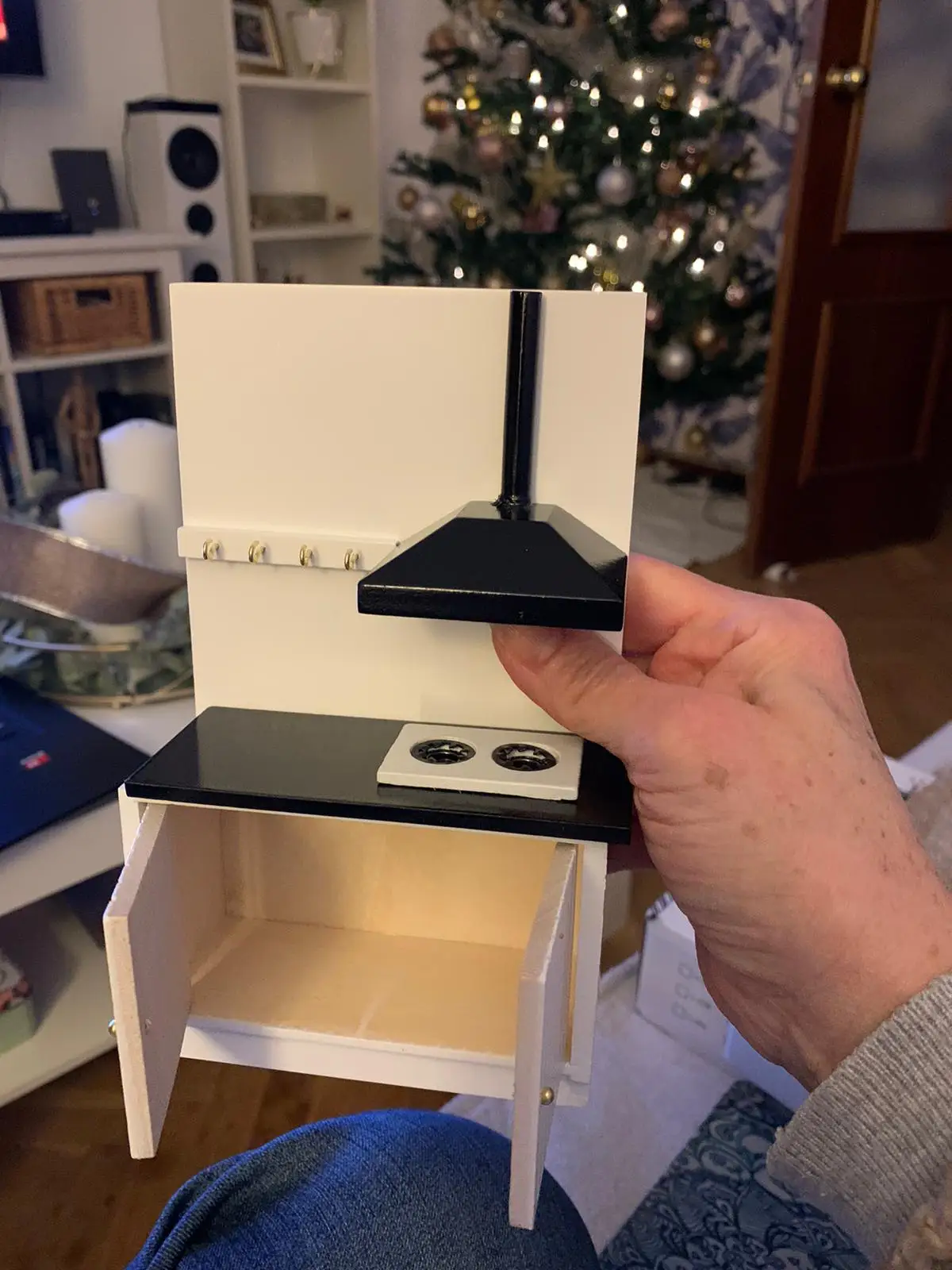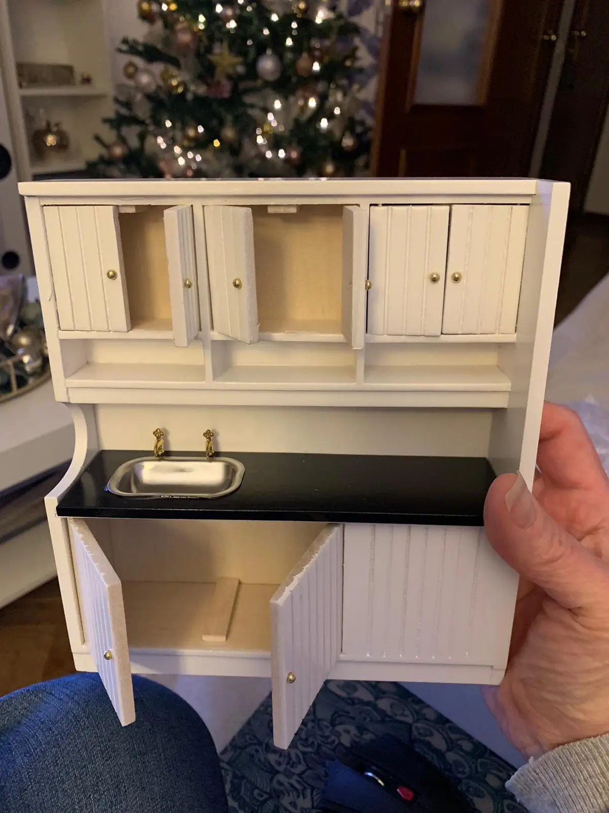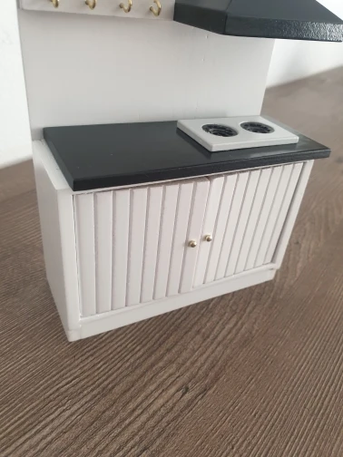 Отличное качество исполнения! Кухня сделана из дерева, действительно, будто копия обычной - детализация великолепная! Никаких заусенец, дверцы прекрасно открываются. До Саратова посылка дошла за 20 дней, включая новогодние праздники