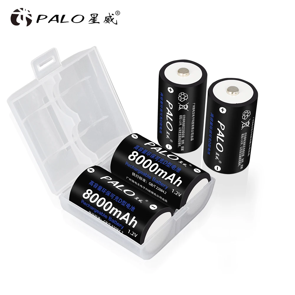 PALO 2 шт. оригинальный 1,2 V 8000mAh Ni-MH аккумулятор D размер ба...