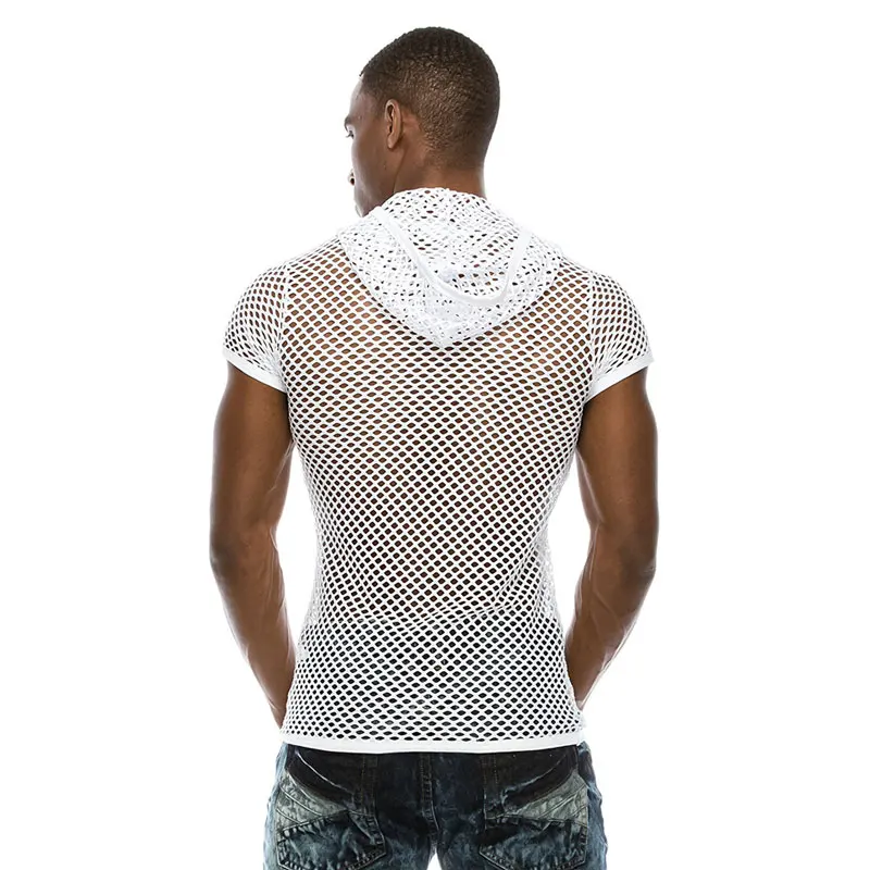 Мужская Просвечивающая Сетчатая футболка с капюшоном, модная футболка с коротким рукавом, сетчатые толстовки, Мужская хипстерская одежда для ночного клуба, 2021
