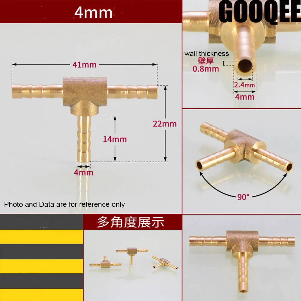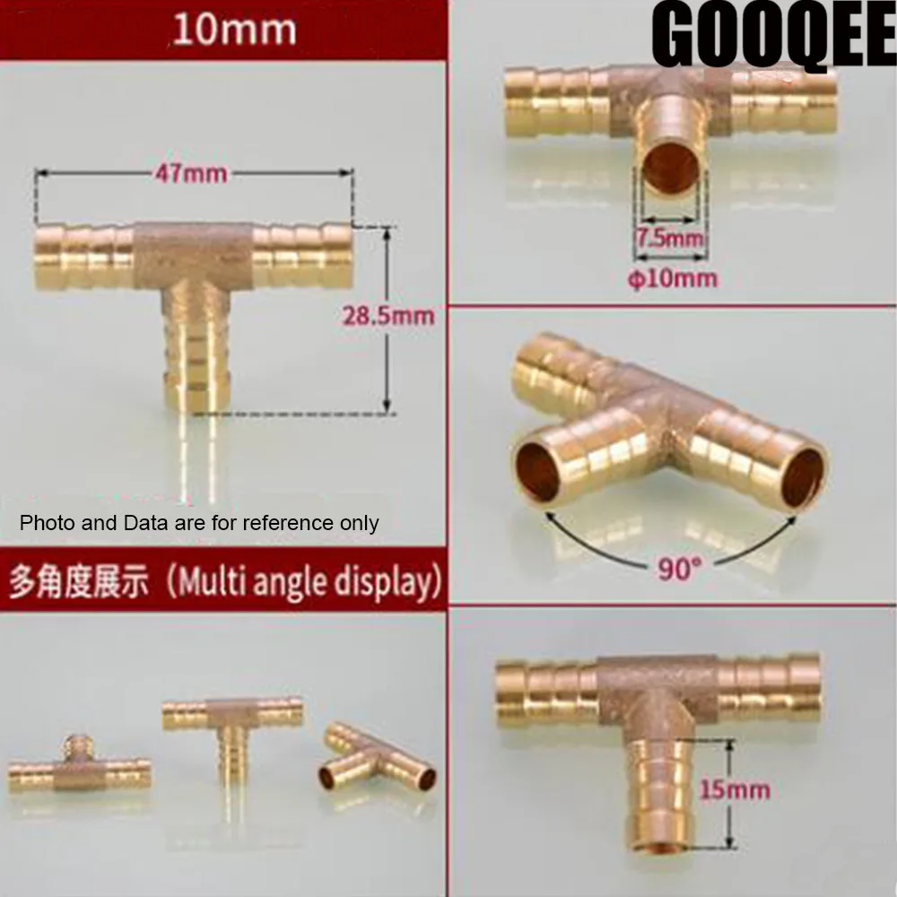 Т-образная латунная штуцер для шланга, 46810121619 мм