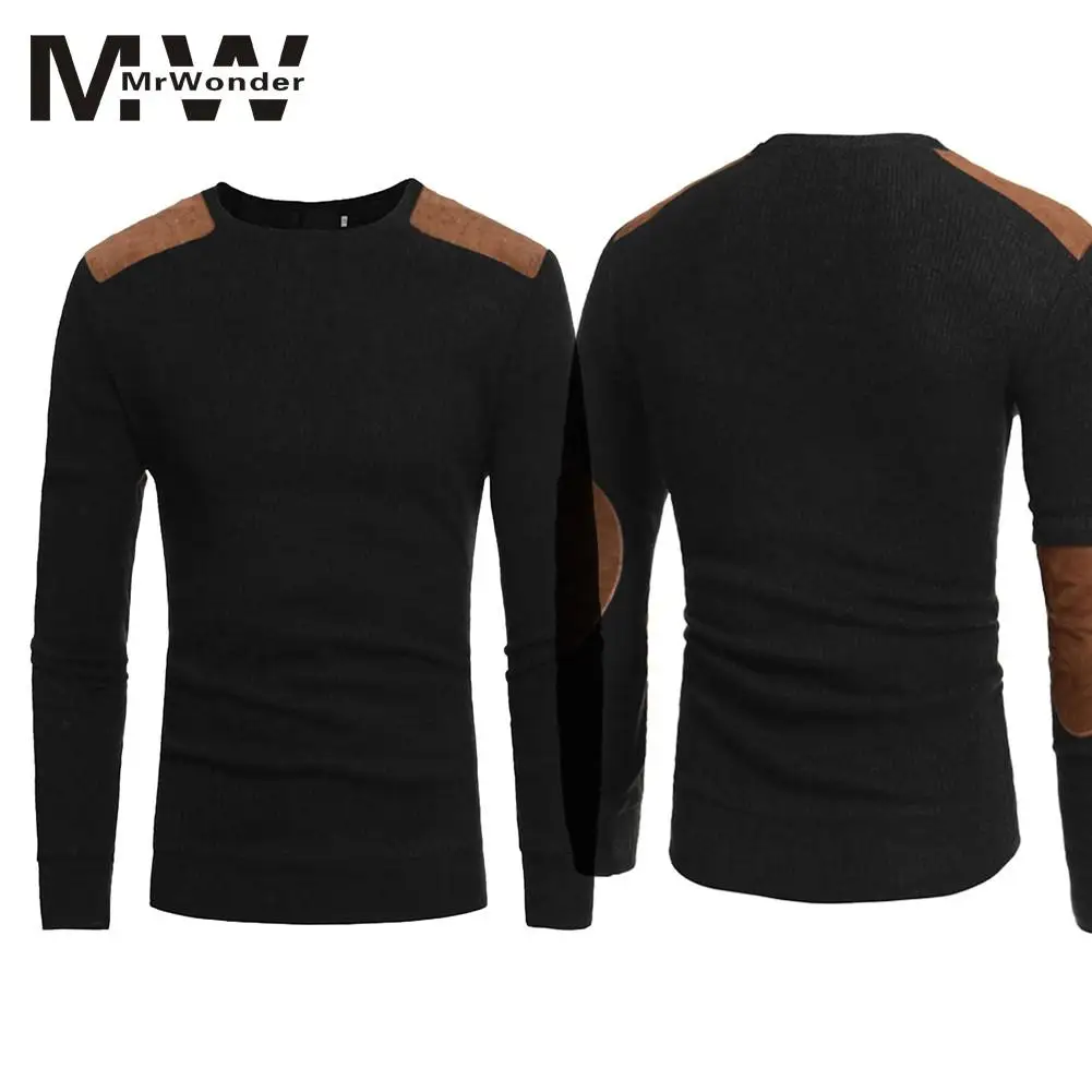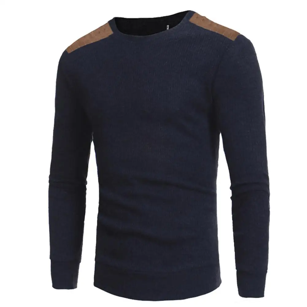 Мужской повседневный вязаный свитер с круглым вырезом, облегающие хлопковые вязаные топы, цветной свитер размера плюс, однотонный, тонкий, для осени, SAN0