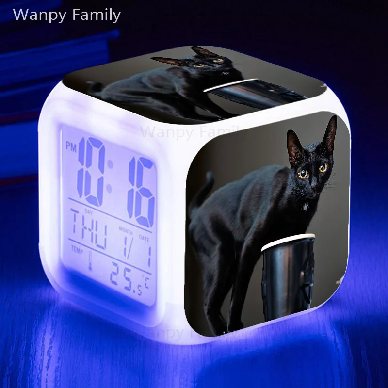 Черная кошка будильники светящийся светодиодный 7 цветов меняющийся...