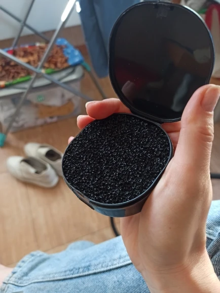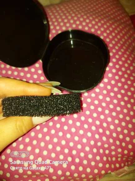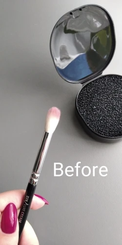 Очень довольна, небольшая такая коробочка с губкой, со своей задачей справляется, кисти от сухих продуктов очищает(на белом ворсе остаётся цвет, но он не переносится на глаза/лицо), цена в примерно 100₽ отличная, спасибо продавцу☺️)