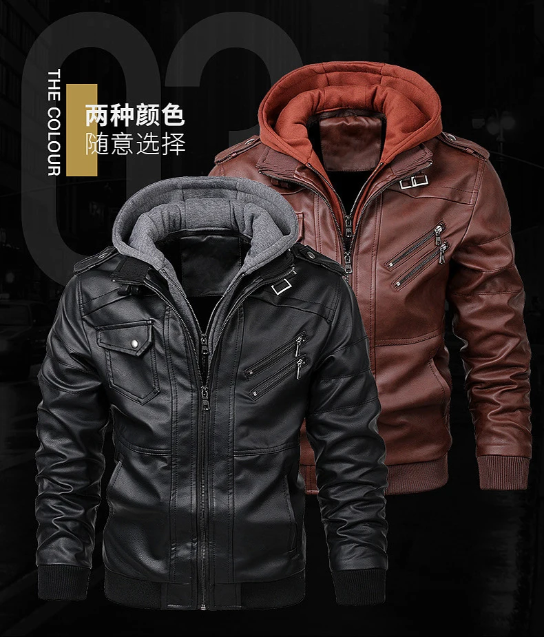 Осенний тренд Jaqueta Couro Masculina, новейшая кожаная куртка со съемным капюшоном, Мужская мотоциклетная кожаная куртка на молнии, верхняя мужская куртка