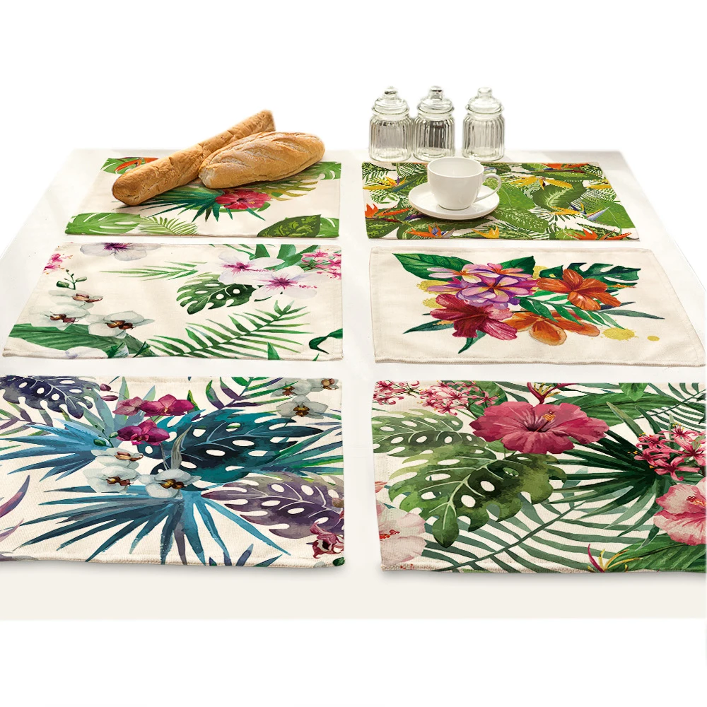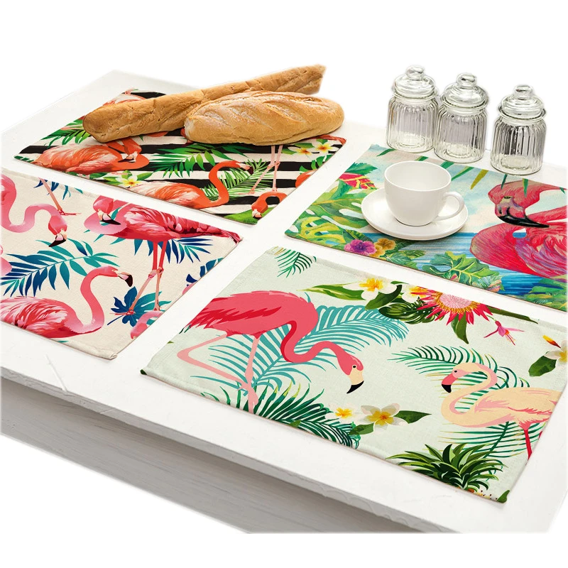 Живопись Тропическое растение цветок Птица Фламинго хлопчатобумажные льняные салфетки подставка кухонные аксессуары украшение стол