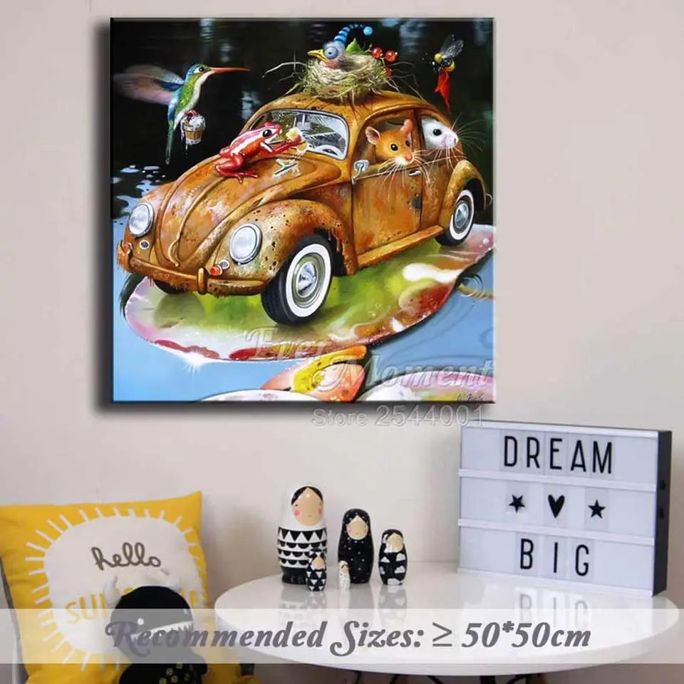 Алмазная живопись, вышивка крестиком, фабрика по уборке автомобиля, лягушка, мышь, птица, мультфильм, полностью скворезная смола, Веселая детская картина ASF996