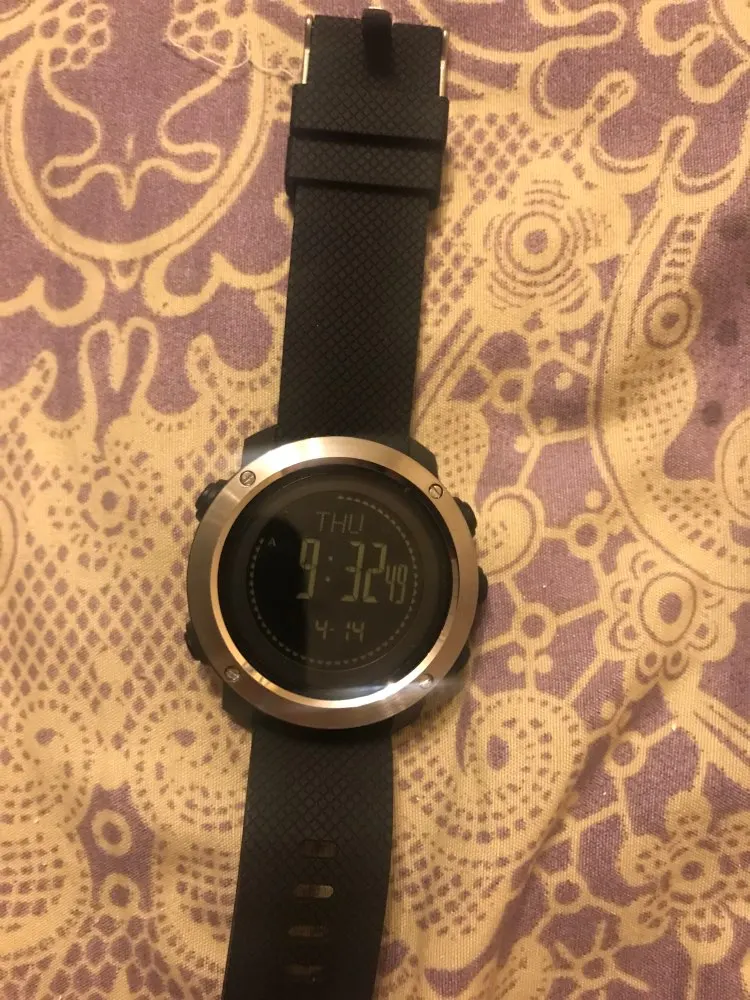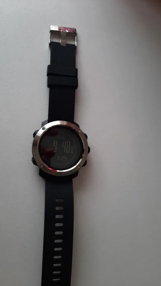 Быстрая доставка. Через две недели он пришел ко мне. В очень простой обертке, но достаточно защиты для часов, которые прибыли в идеальном состоянии. Я был с ним один день, и на данный момент очень рад и удивлен великолепным видимым качеством. Работает исправно. Температура отмечена классом выше двух других термометров, которые у меня есть, и тех, которым я доверяю больше всего, но так как вы можете откалибровать, Я понизил этот класс, и теперь он маркирует ту же температуру s. Компас также откалибровал его, и он хорошо работает. Мне нужно проверить такие функции, как барометр, шагомер и высотомер, которые я немного протестирую. Короче говоря, потрясающие часы по такой цене.