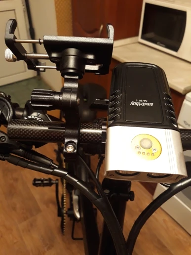 классное крепление, полностью металлическое. есть много различных креплений, но для того места куда я закрепил - все крепления не подошли. Использовал черную изоленту. Крепление хорошое, имеется отверстие в корпусе - если развернуть телефон наоборот и направить камеру по ходу движения - то получится видеорегистратор (должна быть стабилизация видео на смартфоне). С помощью отверстие в корпусе крепления можно начинать и останавливать воспроизведение видео. Один минус, через каждые 5 минут надо подтягивать чу-чуть крепление - начинает издавать звуки - но к этому быстро привык, и подтягиваю автоматически, не замечая.