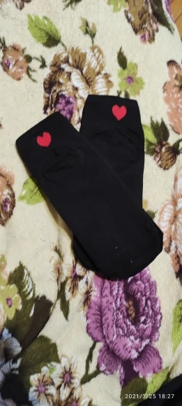 Такие носки у себя покупала рублей за 200 в магазине. очень они понравились, и нашла точно такие же в этом магазине. Носки как на фото, черные с сердечком. Продавец отправил товар быстро, но все застряло на пункте отправки что ли, где собирают все заказы в один от всех продавцов. оплатила 27.02-прибыло 25.03,трек отслеживался. с продавцом не общалась
