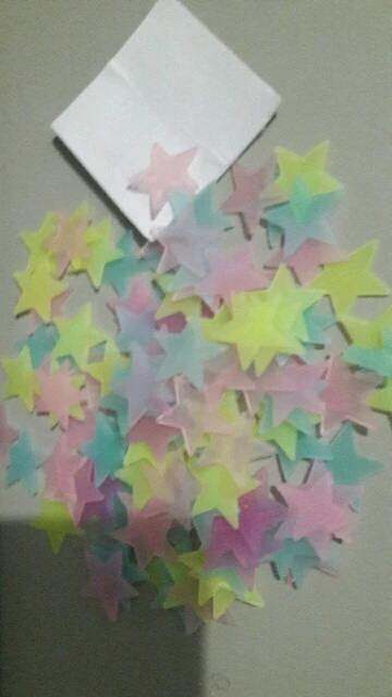 100 шт.компл. 3 см Диаметр 3D звезды светится в темноте; Блестящие светящиеся Пластик наклейки на стену домашний Декор стены