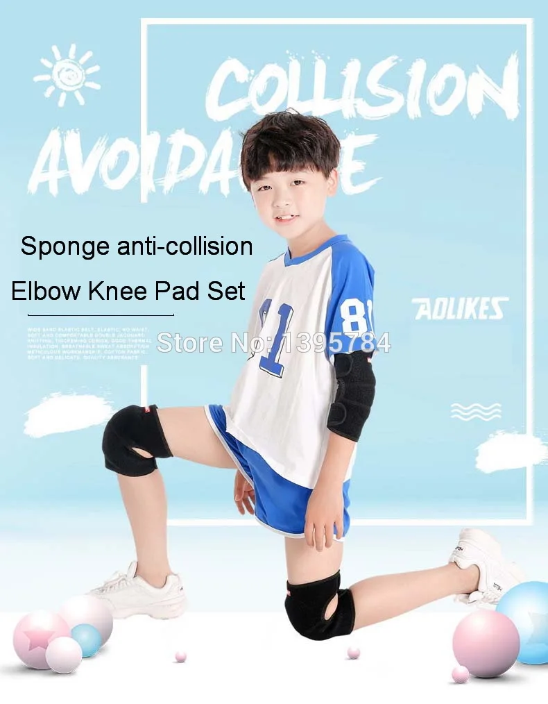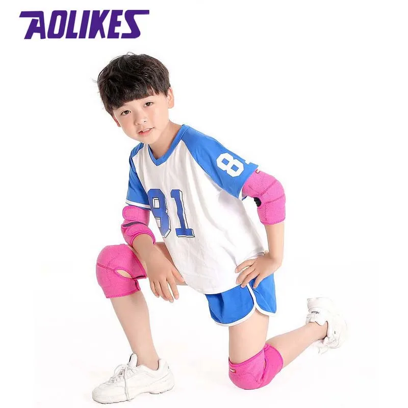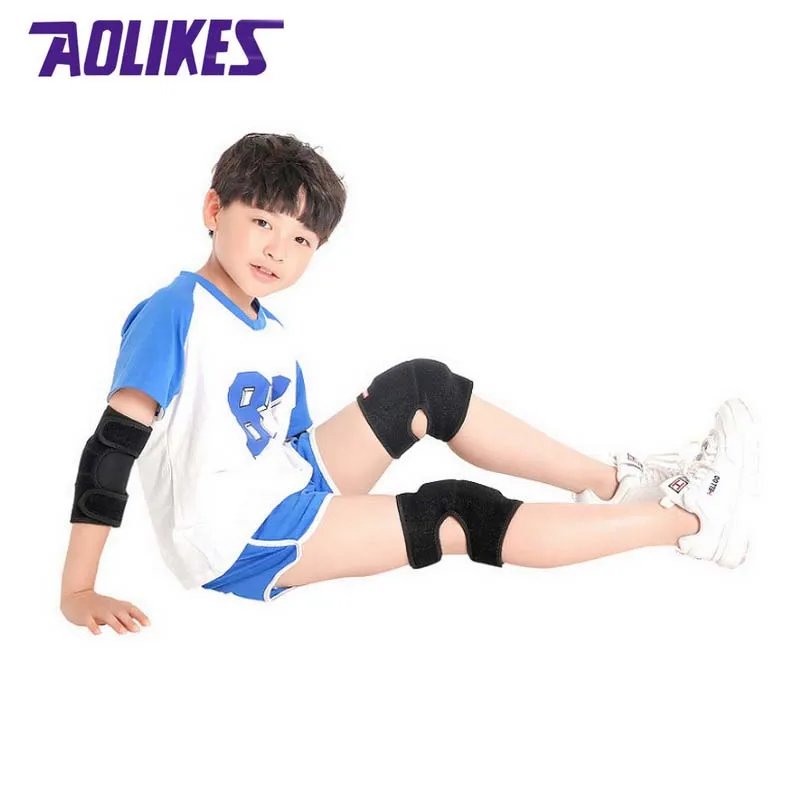 Детский спортивный наколенник AOLIKES, комплект, наколенник из толстой губки, наколенник для танцев на коньках, фиксатор для локтя, защита для колена, для детей