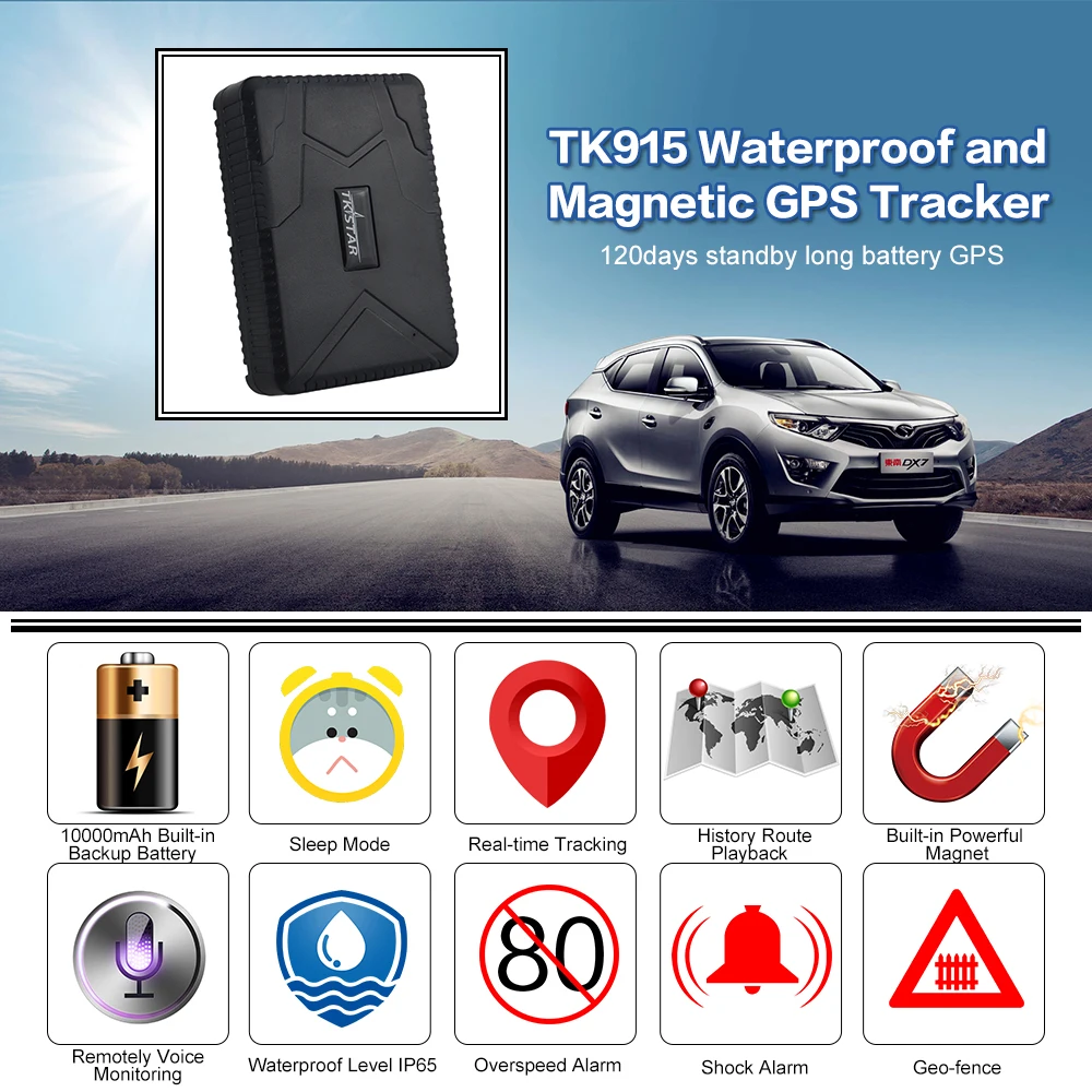 Автомобильный трекер TK915, GPS-трекер с аккумулятором 10000 мАч, 120 дней в режиме ожидания