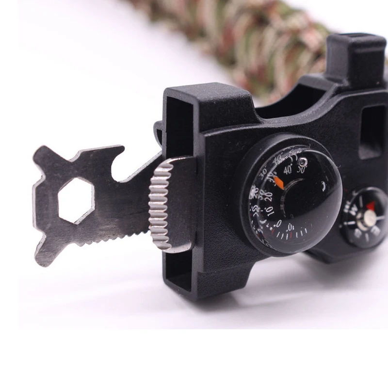 Браслет из парашютной веревки, многофункциональный компас-термометр, свисток, парашютный канат для выживания на открытом воздухе, 15 в одном