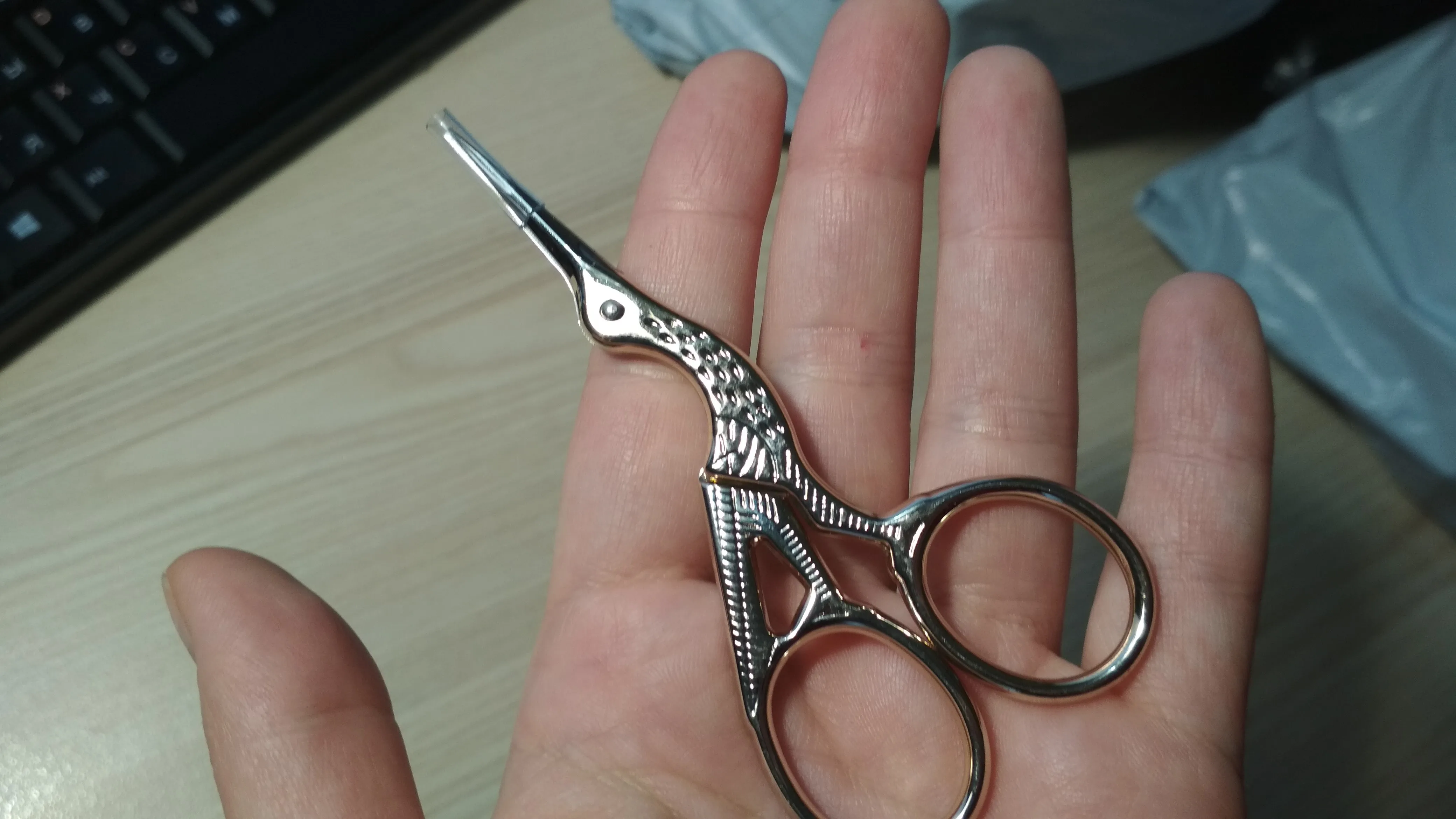 Ножнички дошли до Москвы за 2,5 недели. Очень острые! По размеру, как обычные маникюрные ножницы.
