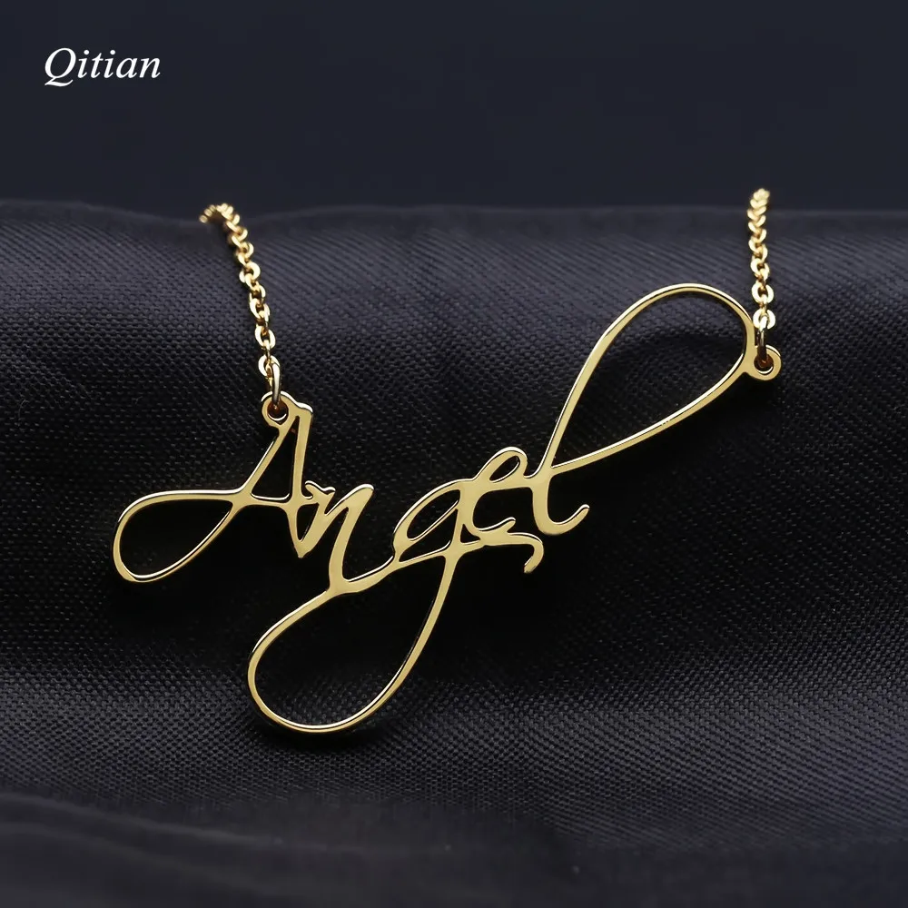 Индивидуальное именное ожерелье именная табличка именные ожерелья и кулоны Cursive почерк цепочка из нержавеющей стали для женщин подарок