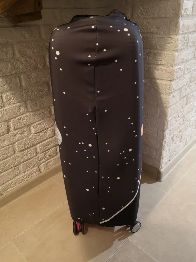 Плотная ткань, хороший принт. Взяли на american tourister soundbox размер 77 см, по их линейке L. Чехол взяли XL, что бы был не в натяг. Есть пару складок сверху, но в целом хорошо. Ещё минус в том, что боковая ручка оказалась не с той стороны, где в чехле под нее отверстие. Было бы круто, если бы разрезы были с 2 сторон. Но для нас не критично, за такую цену и принт вполне годно. Ещё есть огромный плюс в том, что снизу защёлка и молния, а не липучка.