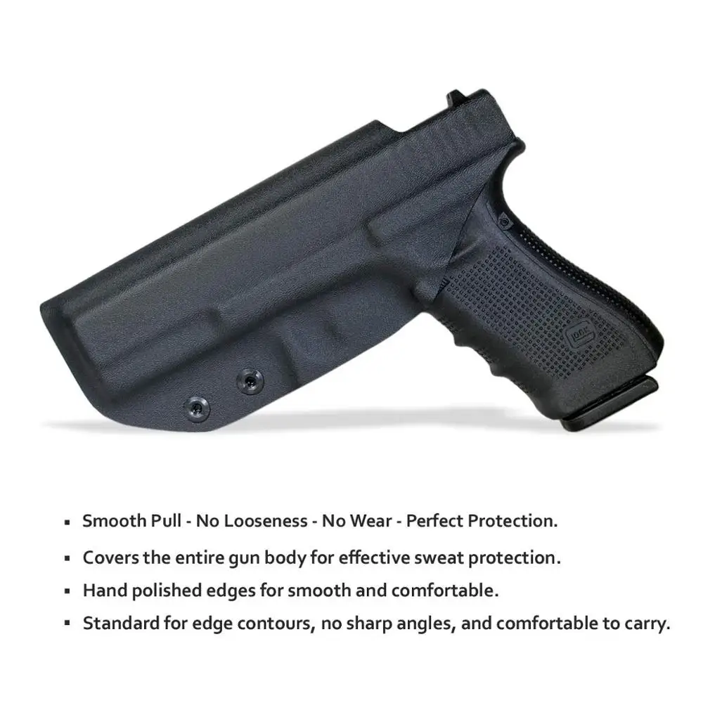 Это Кобура, скрытая в поясе и одежде, которая защищает вас от любого места, не вызывая беспокойства. KYDEX кобура IWB очень тонкий и не имеет острых краев или углов для комфорта и удобства. Можно эффективно спрятать под одеждой.