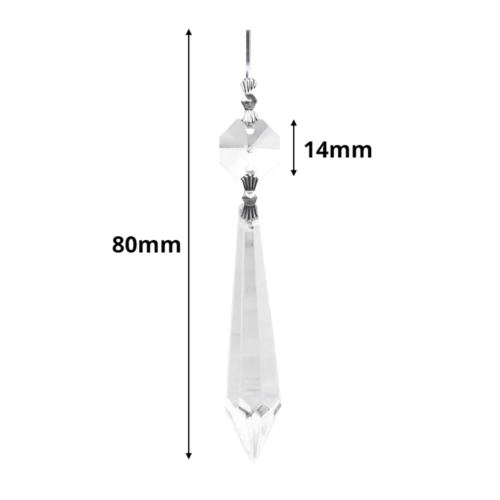 Размер: 14 мм восьмиугольный бисер + 38 мм бисер для мороженогоВсего L: 80 ммОтверстие: 1,5 ммДопускается погрешность 1-2 ммМатериал: Хрустальное стеклоНанесите на: высококачественные хрустальные шторы из бисера, занавески, DIY хрустальное освещение.Посылка в комплекте10 X кулон