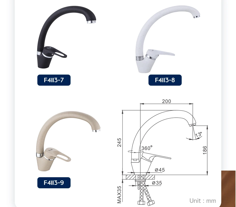 Смеситель для кухни FRAP F4113, латунный с одиночной вращающейся ручкой в 5 цветовых вариантах