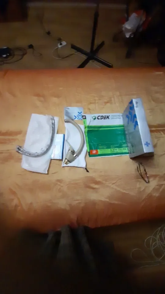 Доставка за 5 дней. В комплекте два гибких шланга 40 см длинной. Крепится к мойке с помощью одной гайки руками. Минус в том что в комплекте отсутствует приспособления для затягивания гайки смесителя и гибкой подводки. У руками очень трудно сильно зафиксировать гайку смесителя. При работе смесителя отсутствует шум.