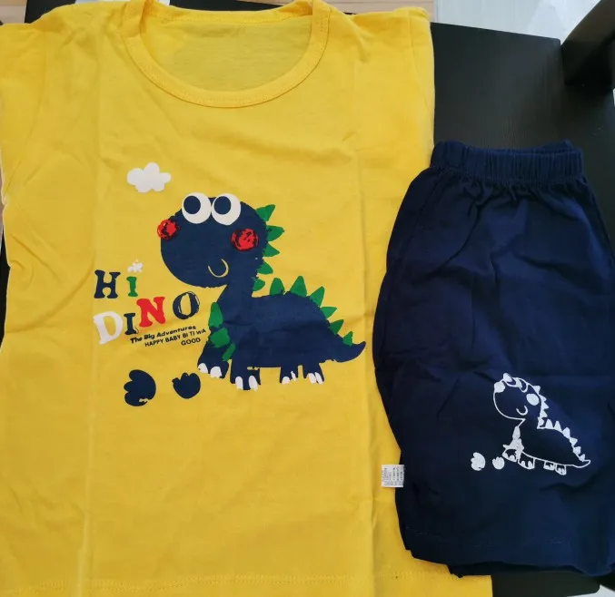 От 6 месяцев до 5 лет унисекс 2 шт.компл. Kawaiiодежда с короткими рукавами хлопковые летние комплекты для мальчиков и девочек шорты детская одежда с круглым вырезом для мальчиков
