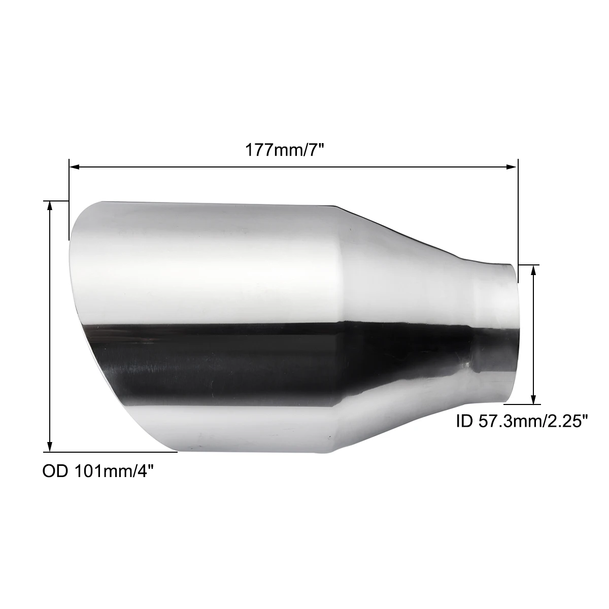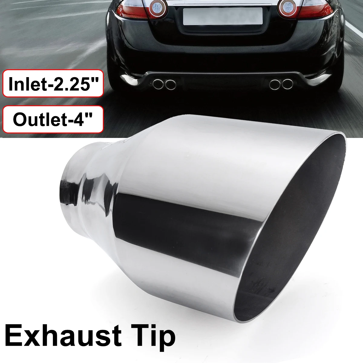 Универсальный выхлопной наконечник из нержавеющей стали, Круглый Наклонный выход 2,25 дюйма, 4 дюймаСпецификация:Название продукта: вытяжной наконечникМатериал: нержавеющая стальЦвет: хромДлина: 177 мм/7 дюймовВход: 57,3 мм/2,25 дюймаВыход: 101 мм/4 дюймаСпособ установки: сваркаТип наконечника: угловая резкаПоверхность: полированнаяОсобенности:1. Выпускной наконечник устойчив к коррозии и щелочам, а также большинству органических и неорганических кислот.2. Многократная полировка, подчеркивающая благородное качество.3. Идеально украсит выхлопную трубу вашего автомобиля.4. Наконечники выхлопных газов надежно закреплены и не отваливаются, они гораздо более устойчивы к краже, чем наконечники выхлопных газов с зажимом.Посылка1 х выпускной наконечник