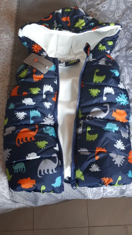 Жилет детский с динозавром, на осеньзиму, с капюшоном