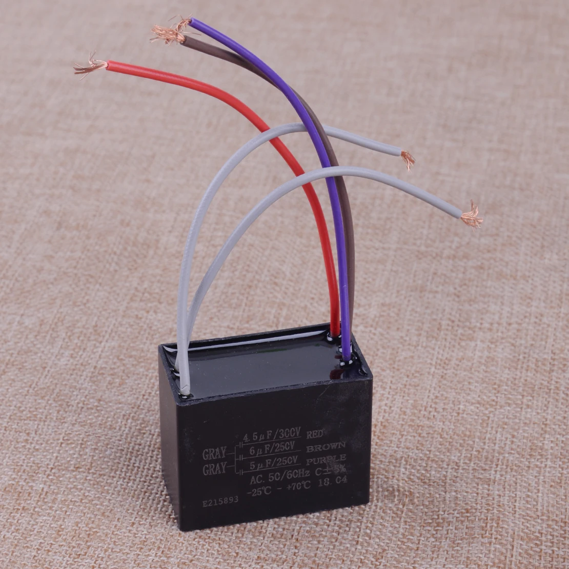 LETAOSK 1 шт. черный Пластик конденсатор для потолочного вентилятора CBB61 4,5 мкФ + 6 мкФ + 5 мкФ 5 Провода 250V-300V AC 4,8x3,9x3,9 см5060Hz рейтинг