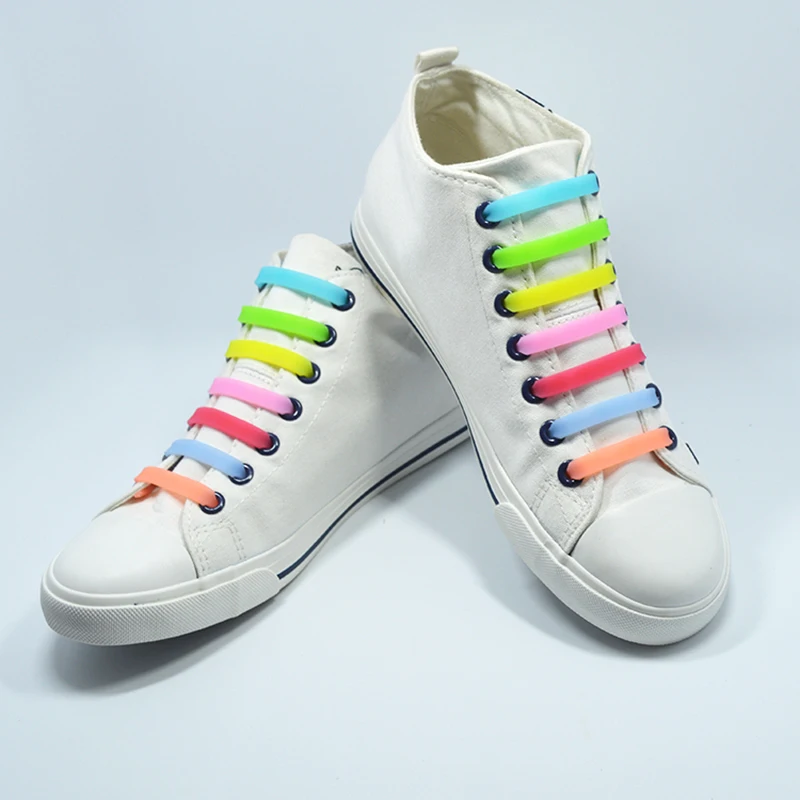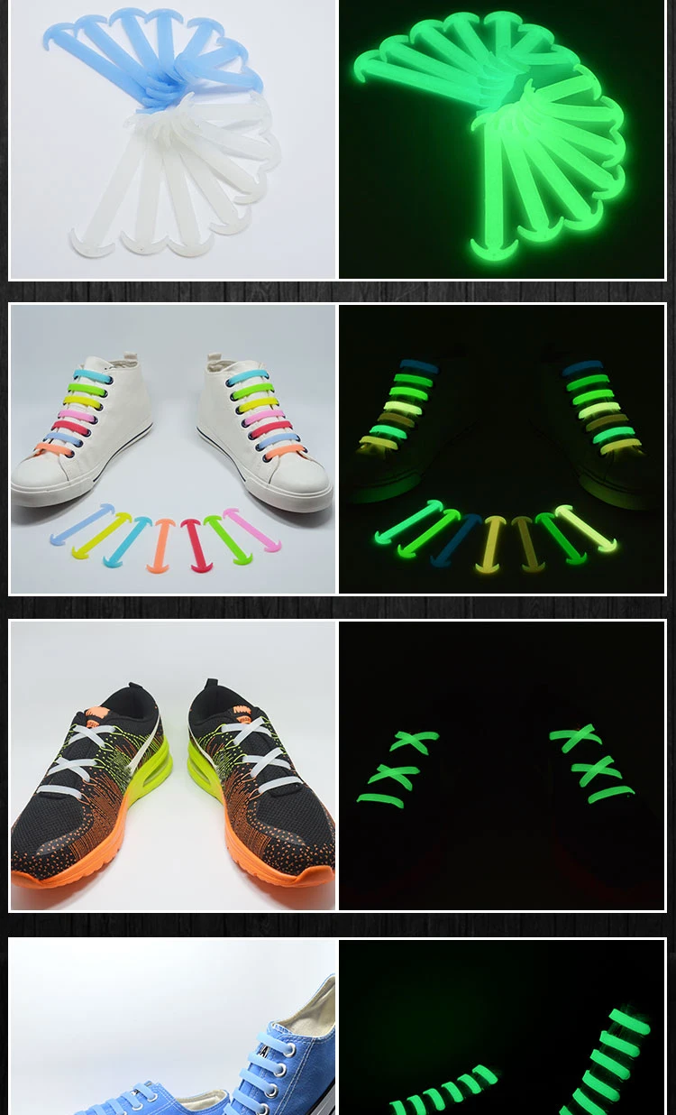 14 шт.лот, новинка, силиконовые эластичные шнурки унисекс без завязывания, спортивные кроссовки, светящиеся шнурки