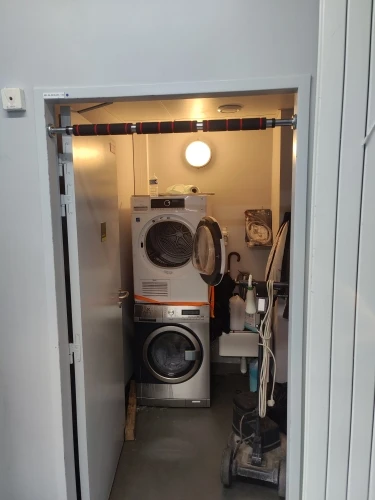 Хороший турник, крепится на 2 пласмасочки и шурупами - когда заказывала, думала, что не придется стены сверлить. Двух людей с весом < 60 кг выдерживает отлично