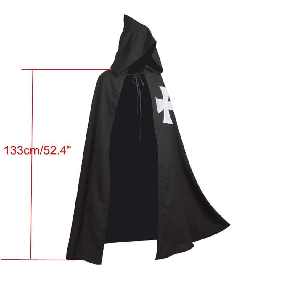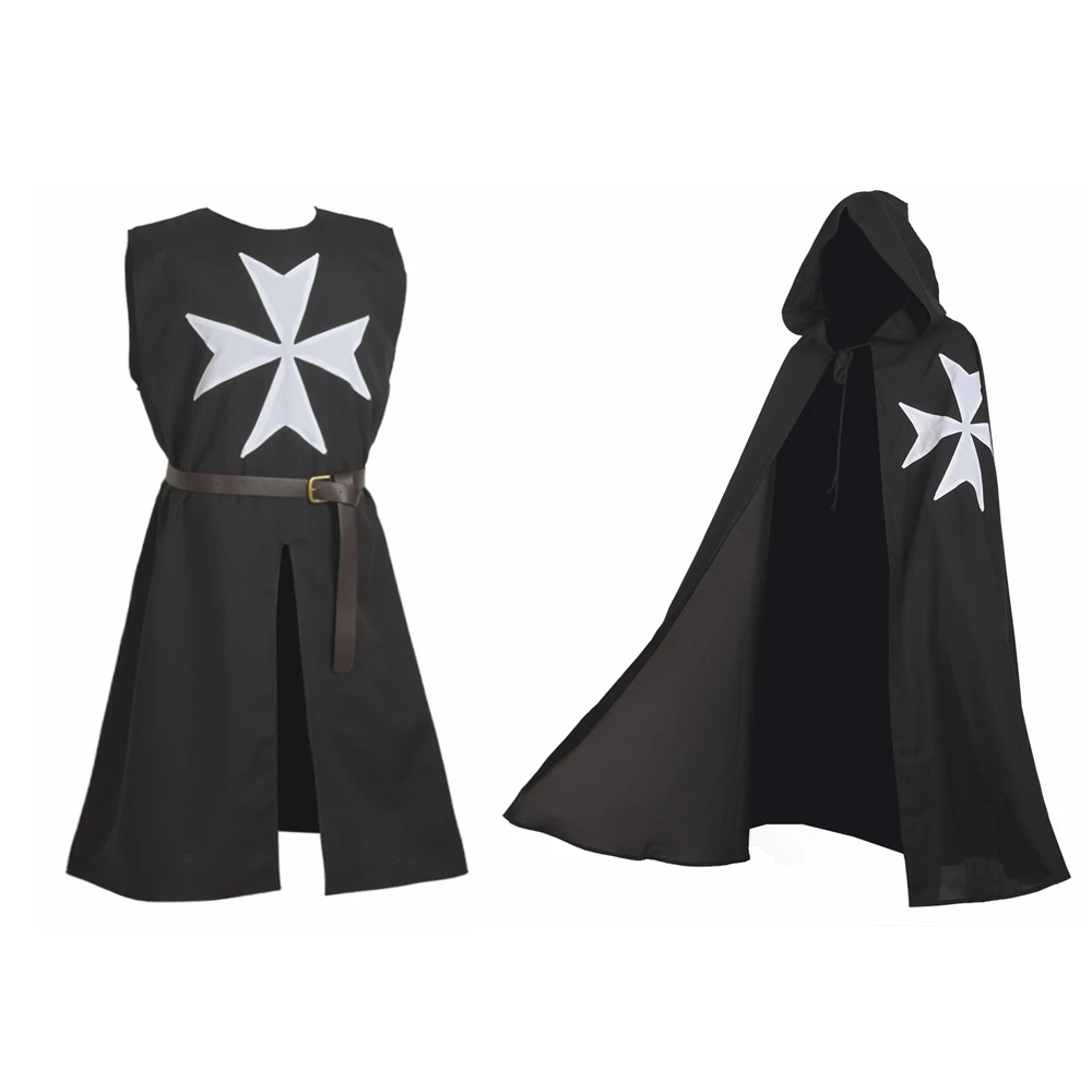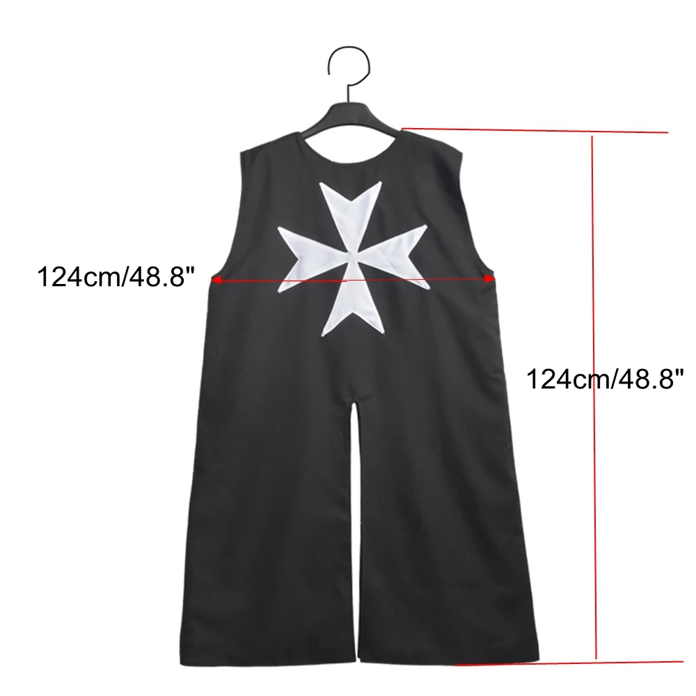Средневековые рыцари, плащ, черный, винтажный, Hospitaller Crusader, туника, накидка, мужская, готический, белый крест, Ларп, Хэллоуин, косплей, костюм