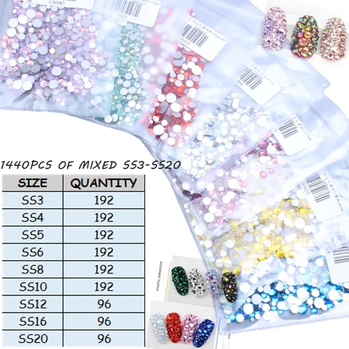 Смешанный размер 400 шт. в упаковке:Смешанные ss4 ss6 ss8 ss10 ss16 ss20, смешанные и упакованные вместе, всего около 400 шт,
