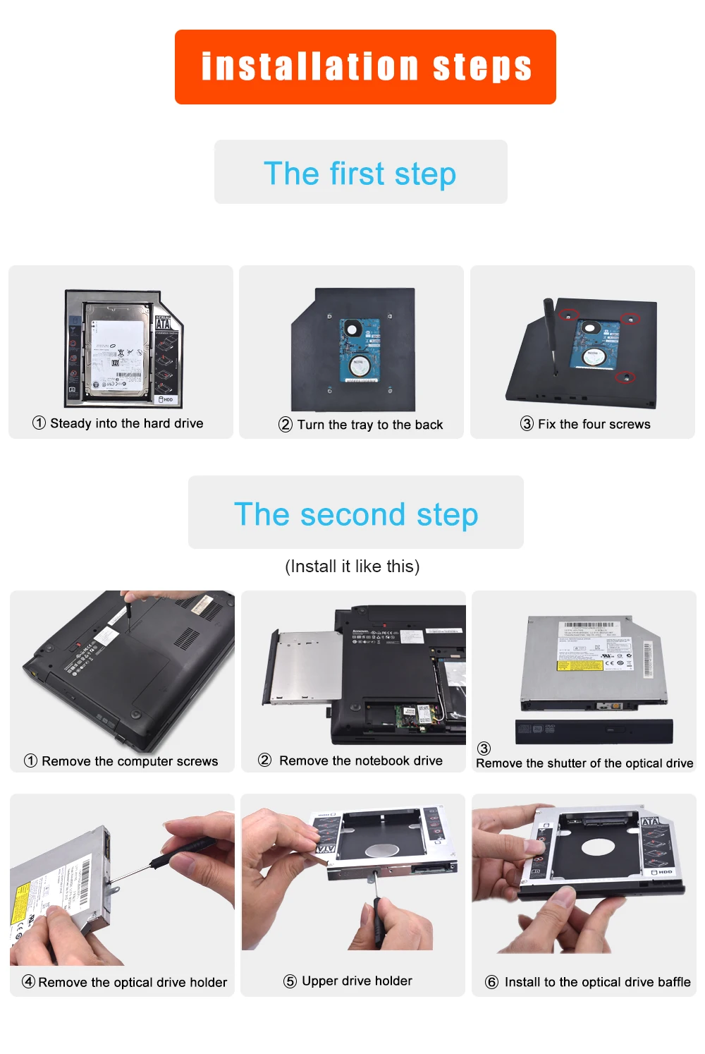 Корпус TISHRIC для жесткого диска 9,5 дюйма, 12,7 мм, SATA 3,0, Optibay 2,5 дюйма, 2 ТБ дюйма, SSD, со светодиодной подсветкой, для ноутбука, CD, DVD ROM