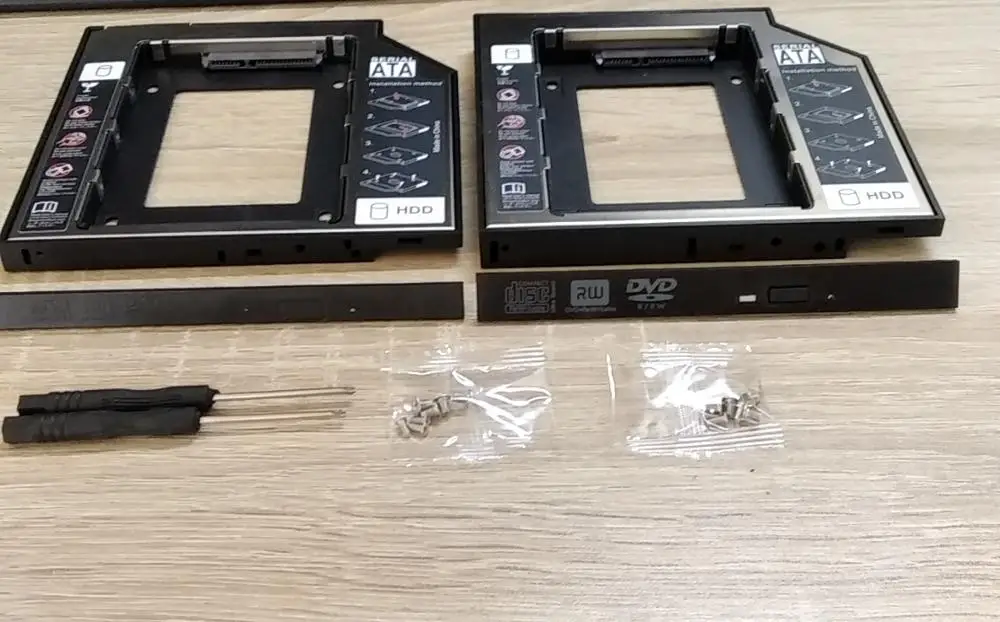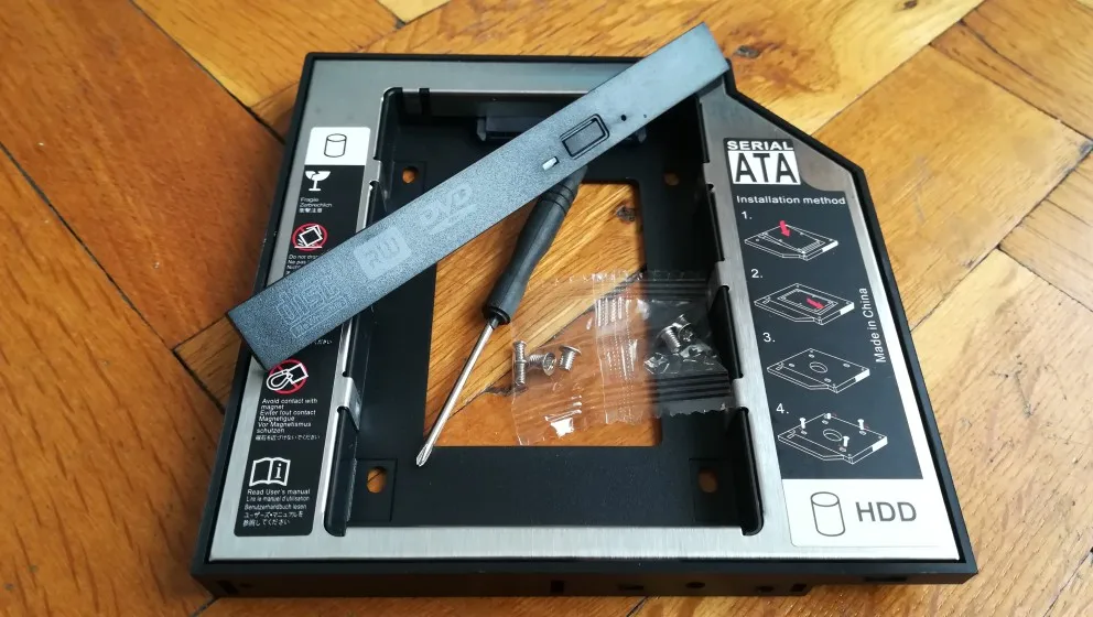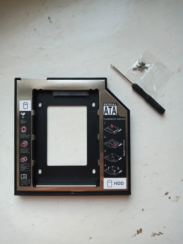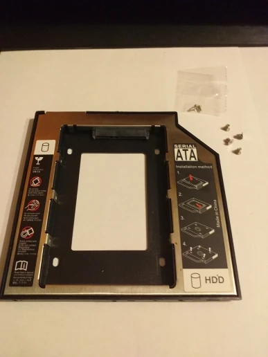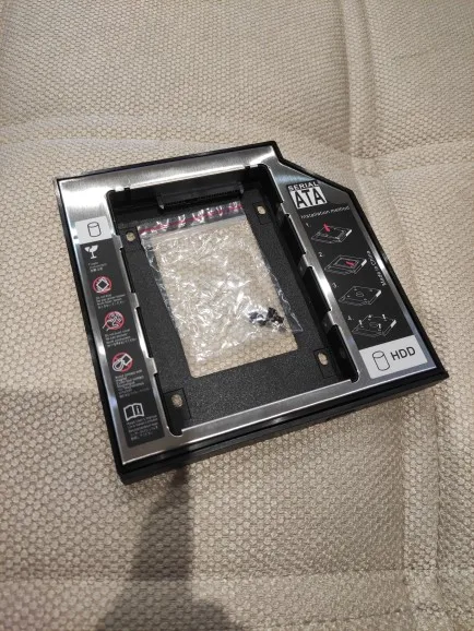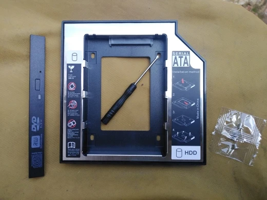 Диск 2.5'' в корпус встал отлично, болтики в комплекте очень кстати. В ноут вся конструкция зашла с небольшим усилием (заглушка дисковода ходила легко). Поставил, загрузил систему и все данные с жёсткого доступны. Полезная вещица. Рекомендую.